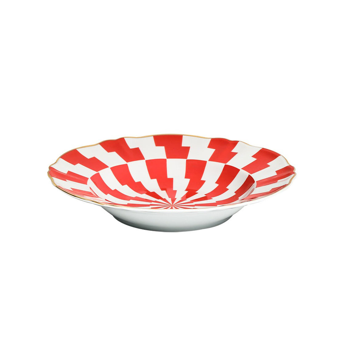 Глубокая тарелка Fulmine из коллекции Abracadabra. Фарфоровая глубокая тарелка с цветной деколью и золотыми деталями. Подходит для посудомоечной машины до 250 циклов, не подходит для микроволновой печи. Диаметр 23 см. Дизайн: La Tigre.