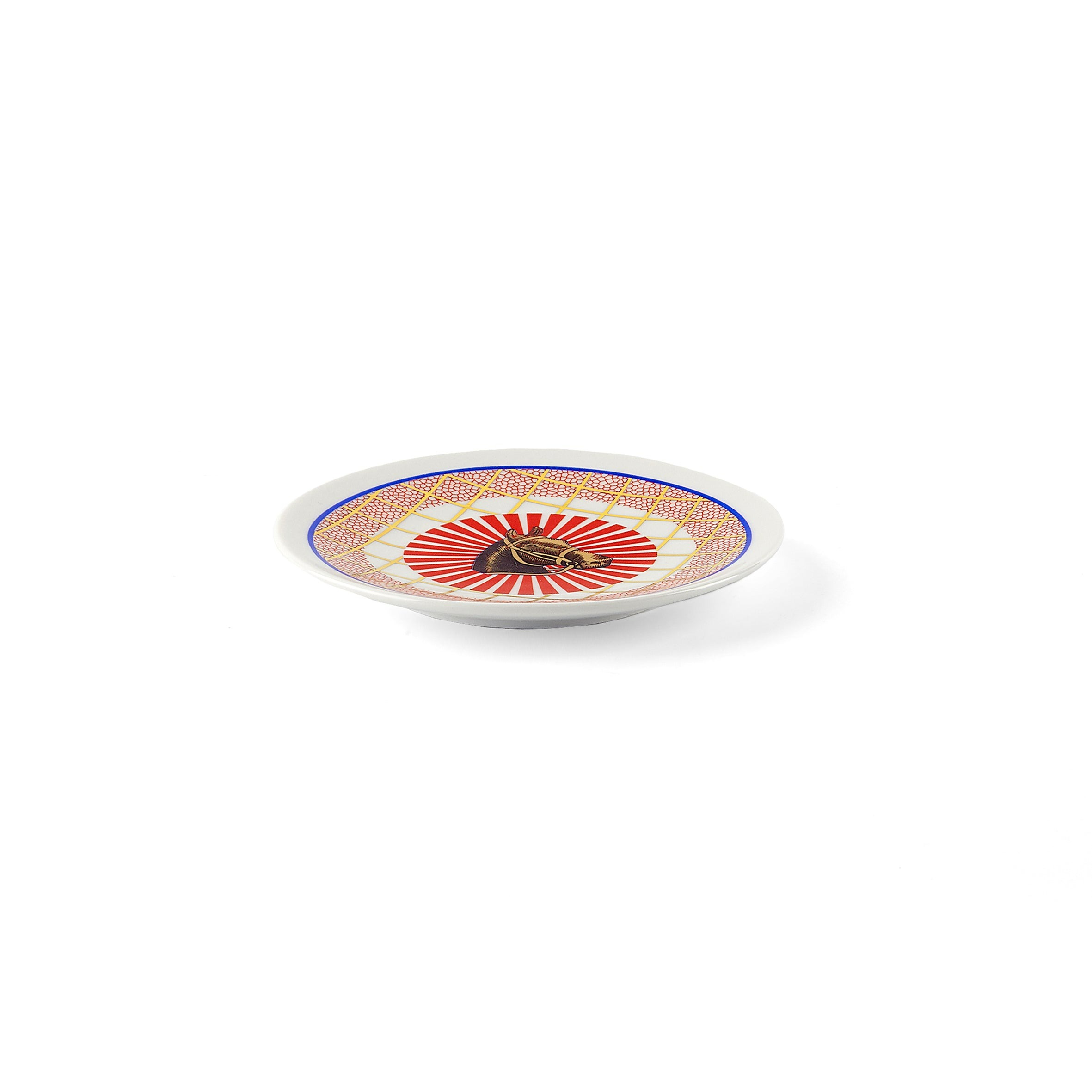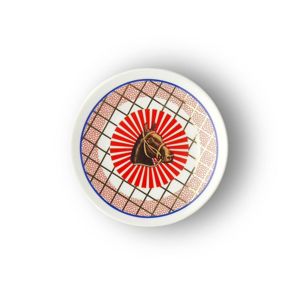 Маленькая тарелка Cavallo из коллекции Bel Paese. Фарфоровая маленькая тарелка с деколью и золотой каймой. Подходит для посудомоечной машины до 250 циклов, не подходит для микроволновой печи. Диаметр 12 см. Дизайн: Sam Baron.