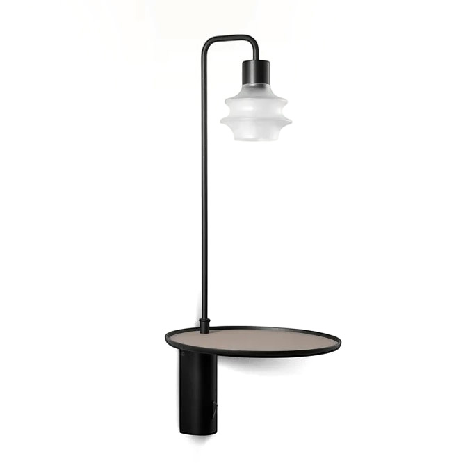 Настенный светильник Bover из коллекции Drip-Drop. Основание из металла черного цвета, плафон из стекла матового белого цвета. Cветильник с небольшой круглой полочкой и с usb-входом для зарядки гаджетов.