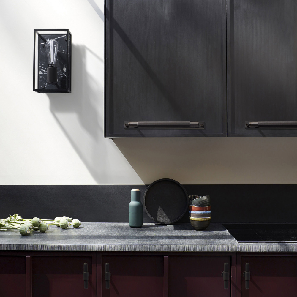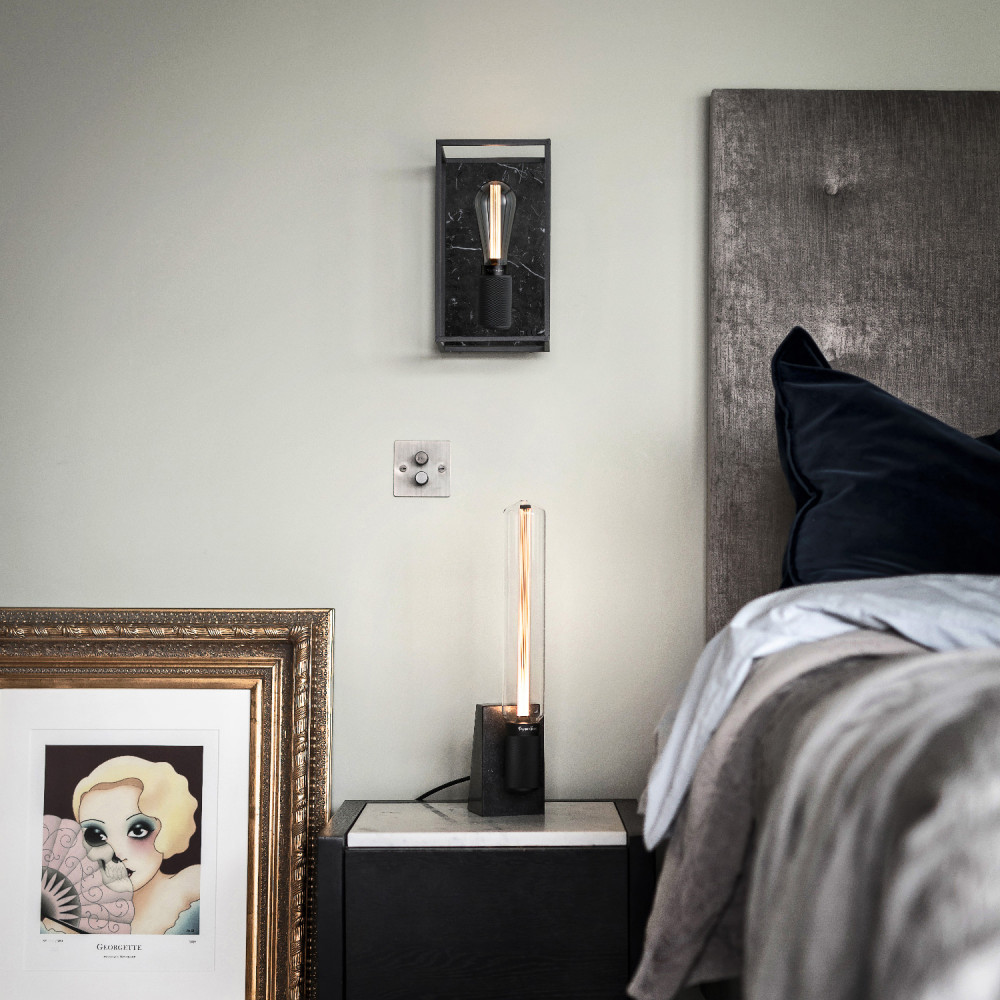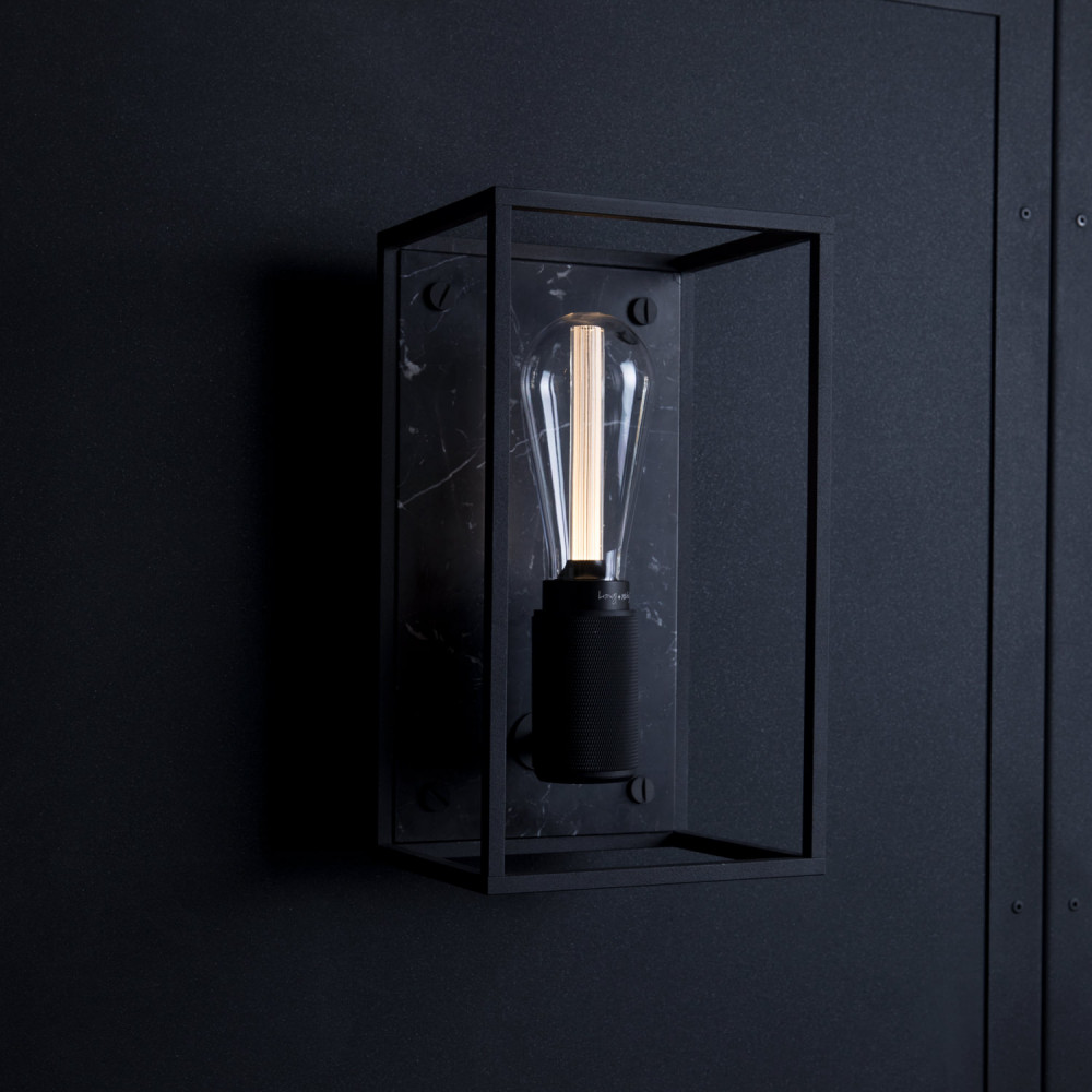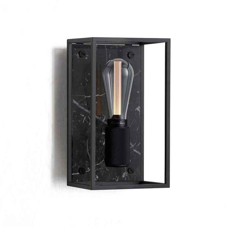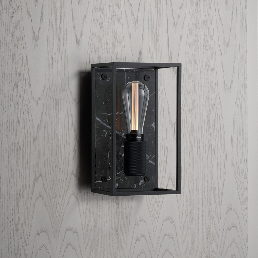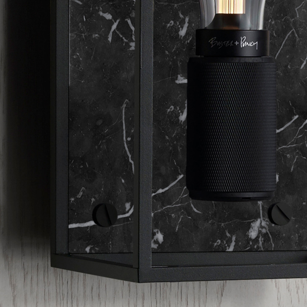 Настенный светильник Caged изготовлен из матового черного металлического каркаса и задней панели из черного мрамора. Этот светильник может работать как самостоятельно, так и линейно, чтобы добиться максимального эффекта. Кабель и лампочка не входят в комплект, продаются отдельно.