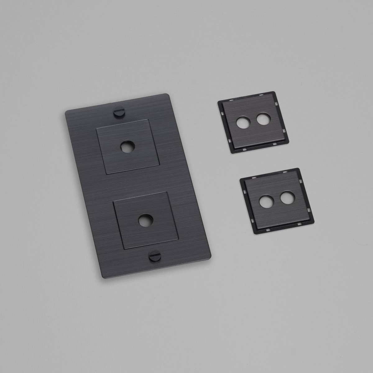 Рамка из металла бронзового цвета, вертикальная. Комплектуется различными модулями (выключатели, диммеры, розетки и тд), входящими в коллекцию Plates and Modules.