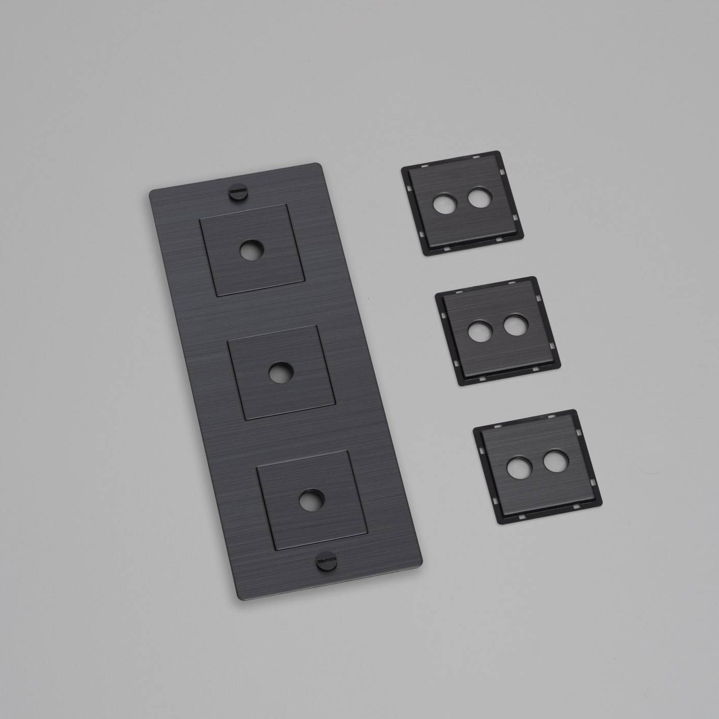 Рамка из металла бронзового цвета. Комплектуется различными модулями (выключатели, диммеры, розетки и тд), входящими в коллекцию Plates and Modules.