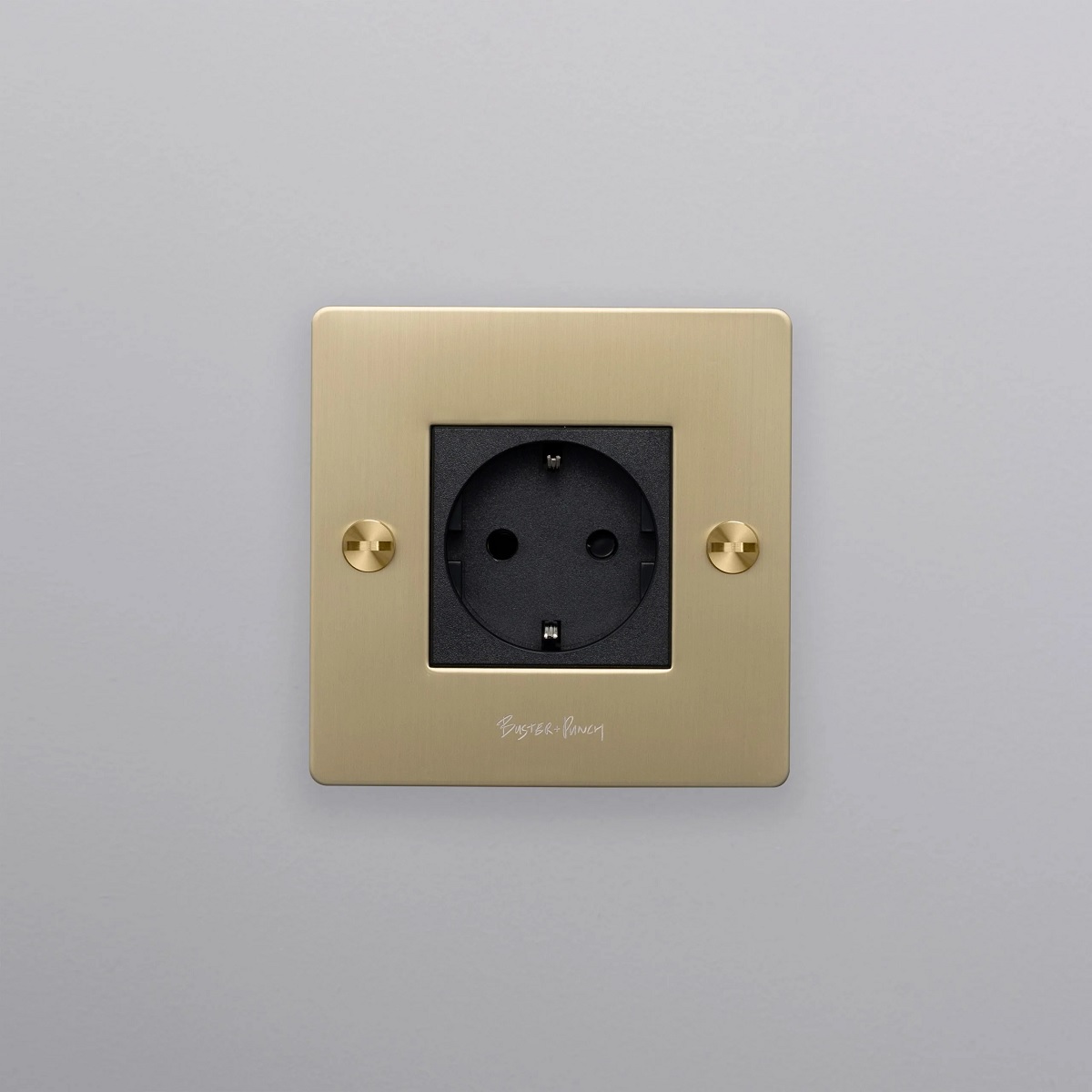 Розетка европейского стандарта на 1 разъем, латунного цвета с логотипом Buster and Punch.