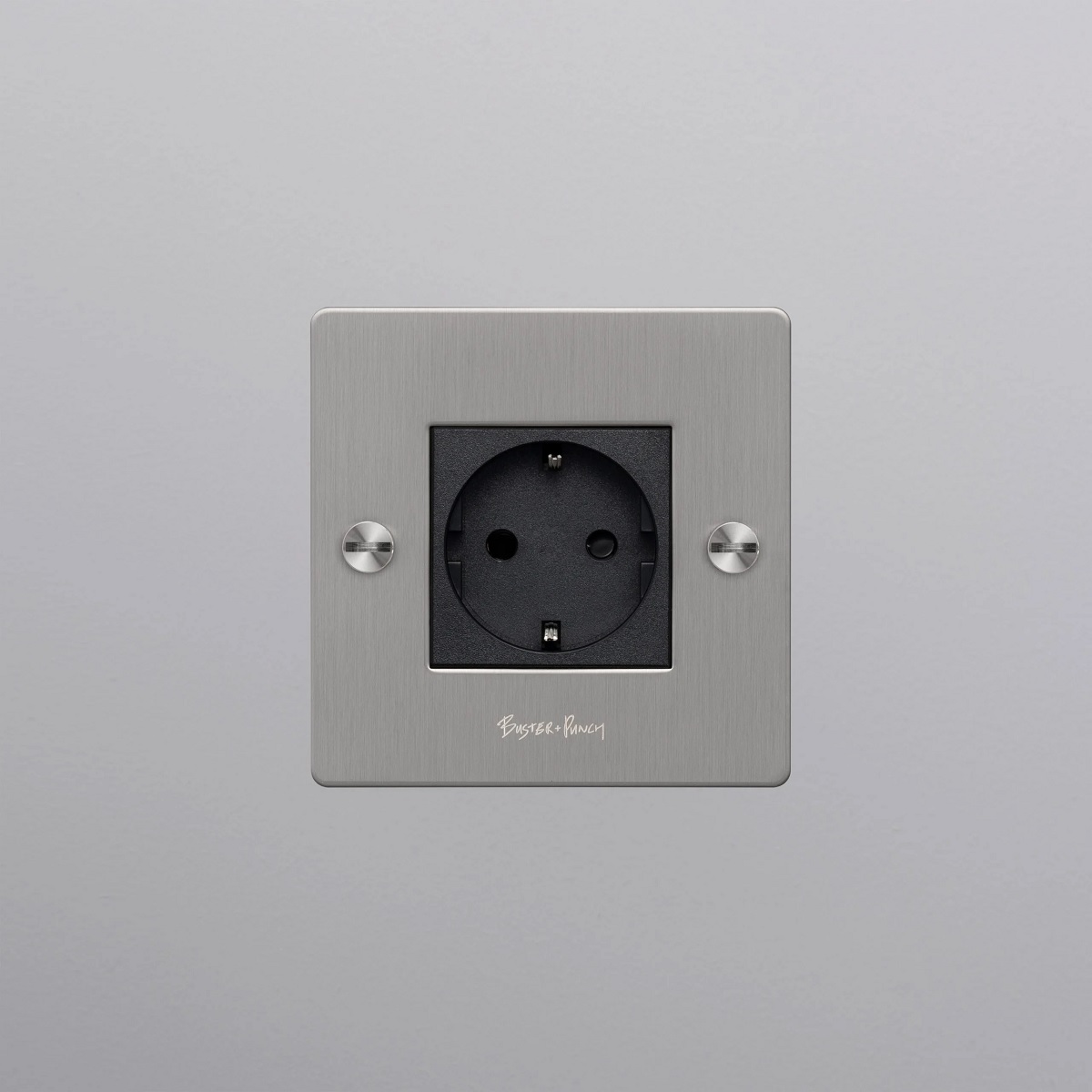 Розетка европейского стандарта на 1 разъем, стального цвета с логотипом Buster and Punch.