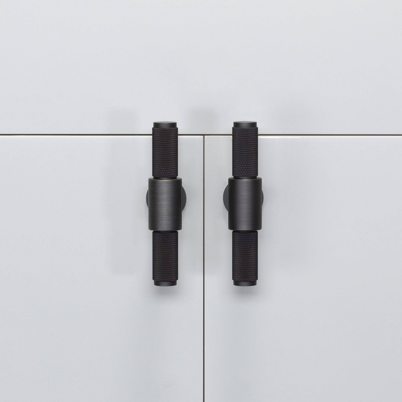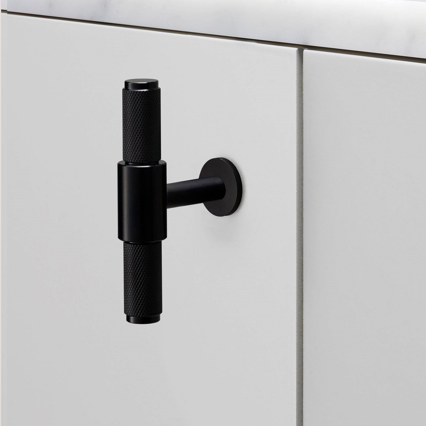 Т-образная ручка Buster+Punch T-Bar Cross Black c круглой задней панелью: ручки с узнаваемой фирменной крестообразной накаткой, обработаны вручную. Круто смотрятся на дверцах шкафов, буфетах, кухонных гарнитурах и практически на всем, что вообще может открываться.