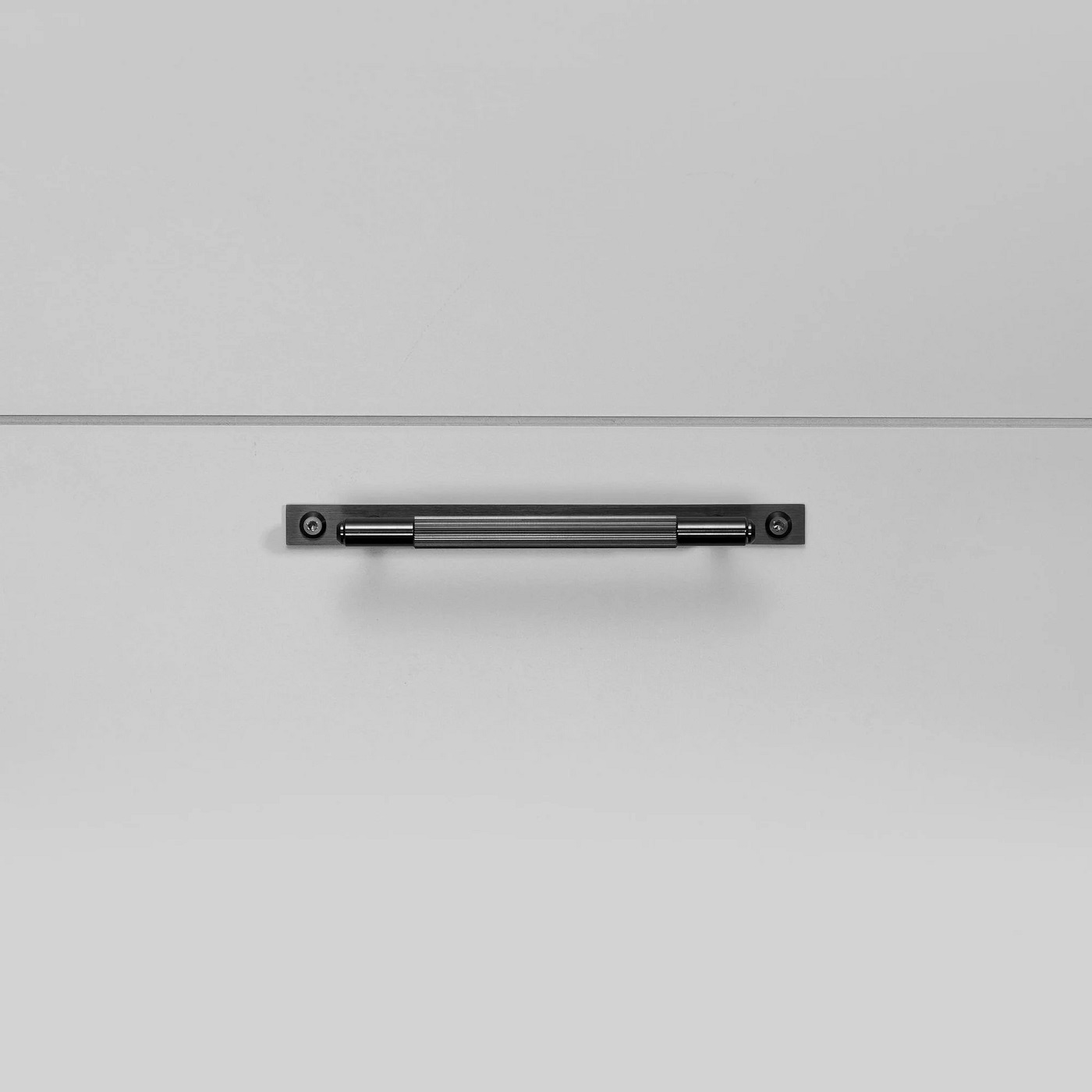 Ручка Pull Bar Plate Linear Small Black из металла черного цвета с фирменной линейной накаткой, обработана вручную. Комплектация включает в себя прямоугольную заднюю панель.