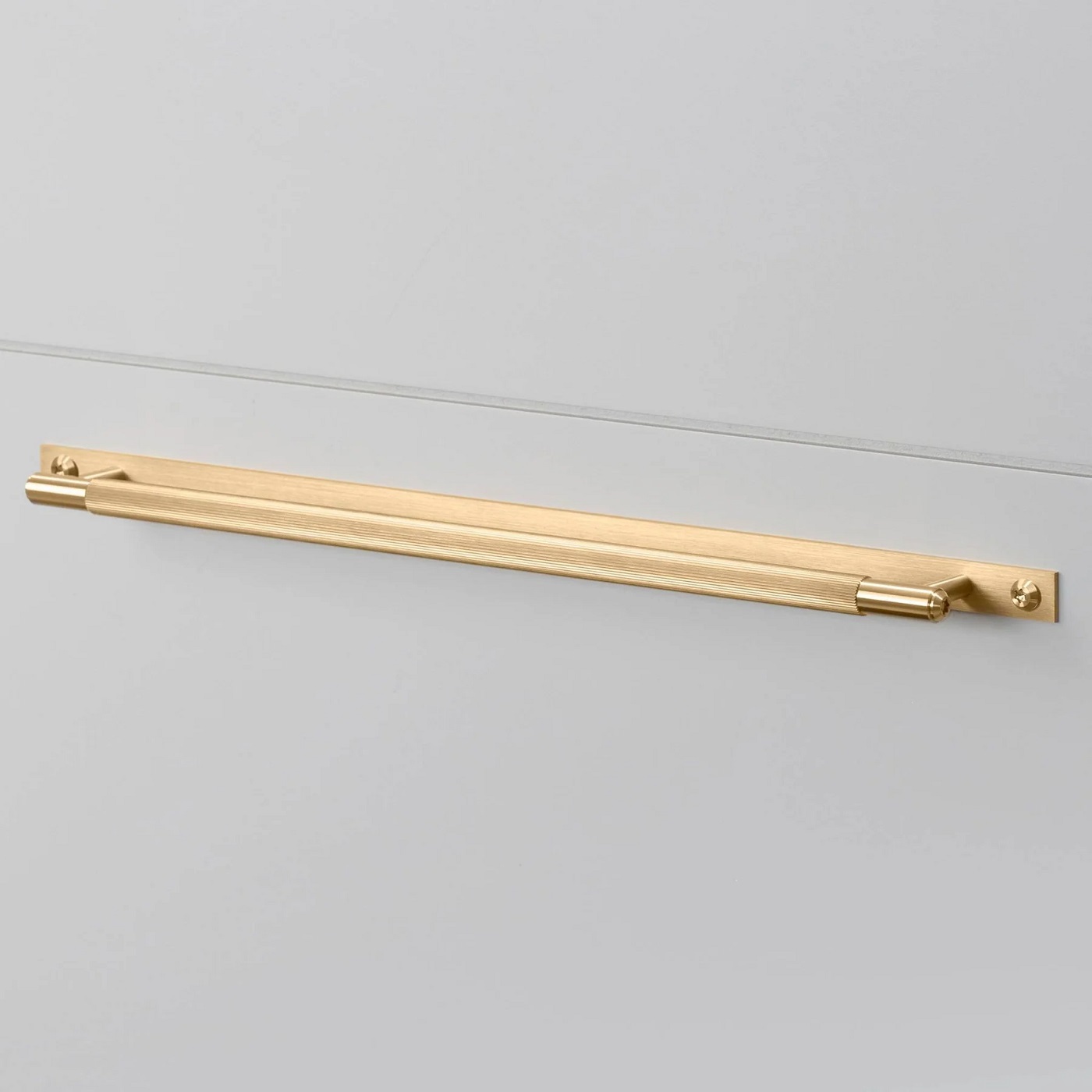 Ручка Pull Bar Plate Linear Large Brass из латуни с фирменной линейной накаткой, обработана вручную. Комплектация включает в себя прямоугольную заднюю панель, изготовленную из цельного анодированного металла.