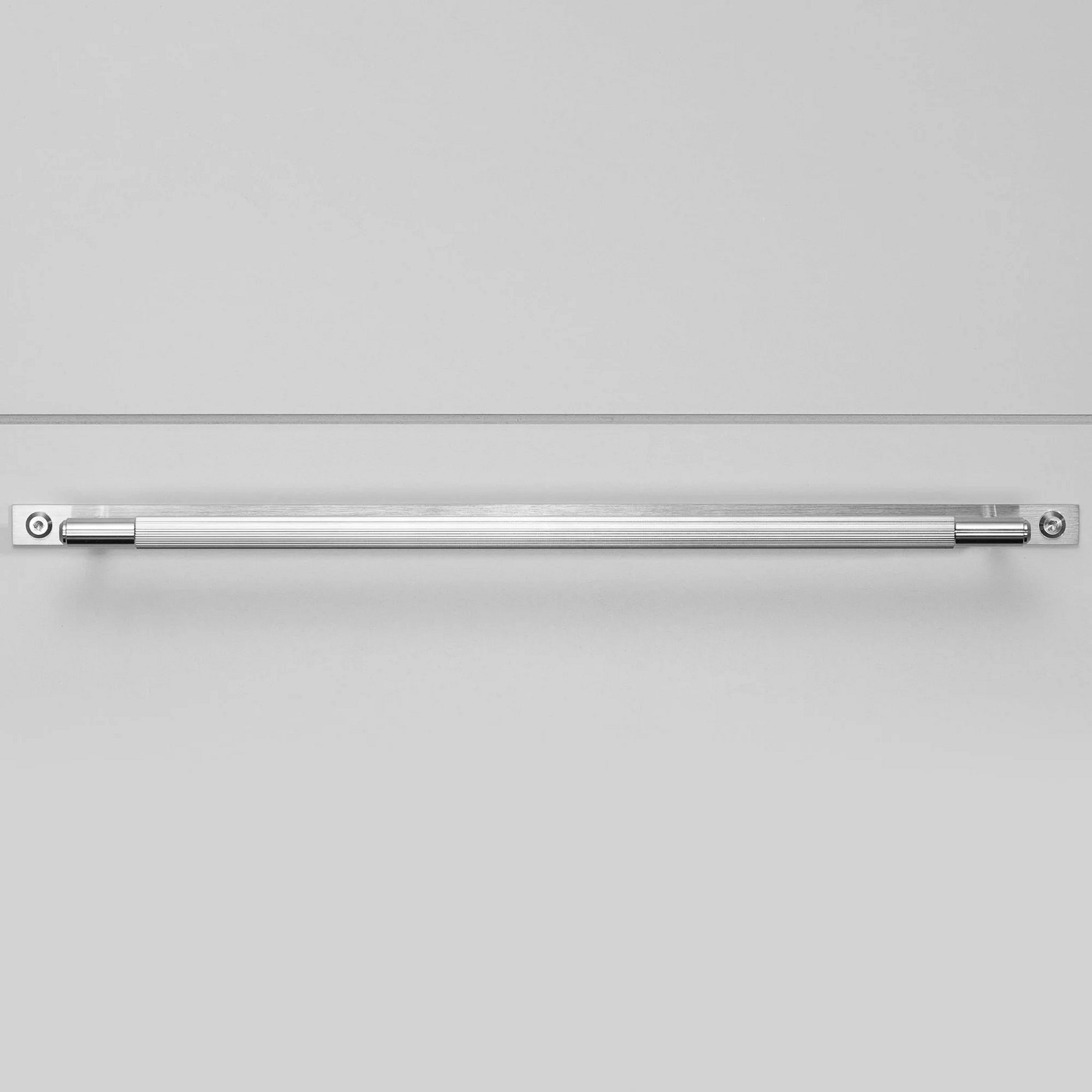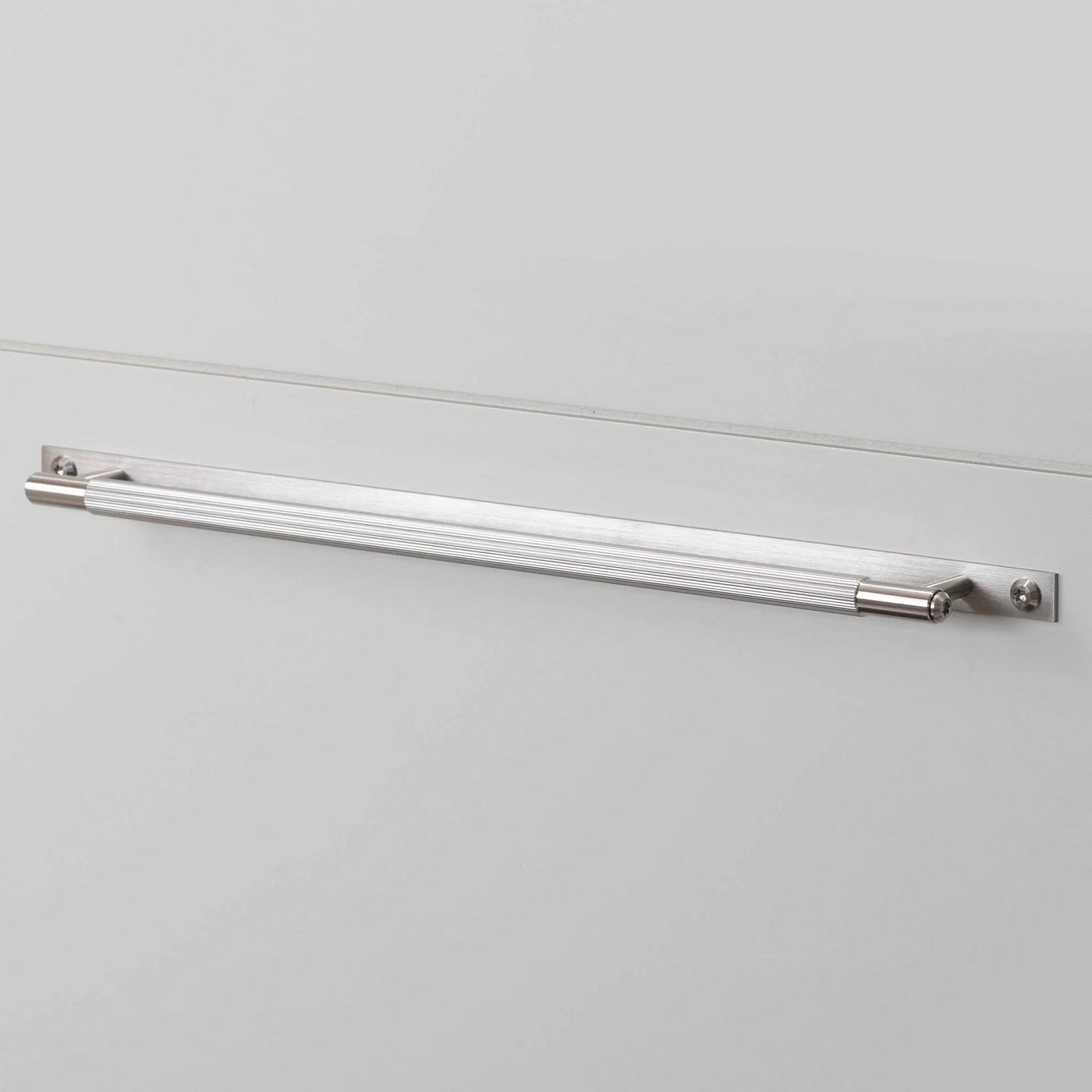 Ручка Pull Bar Plate Linear Large Steel из металла с фирменной линейной накаткой, обработана вручную. Комплектация включает в себя прямоугольную заднюю панель, изготовленную из цельного анодированного металла.