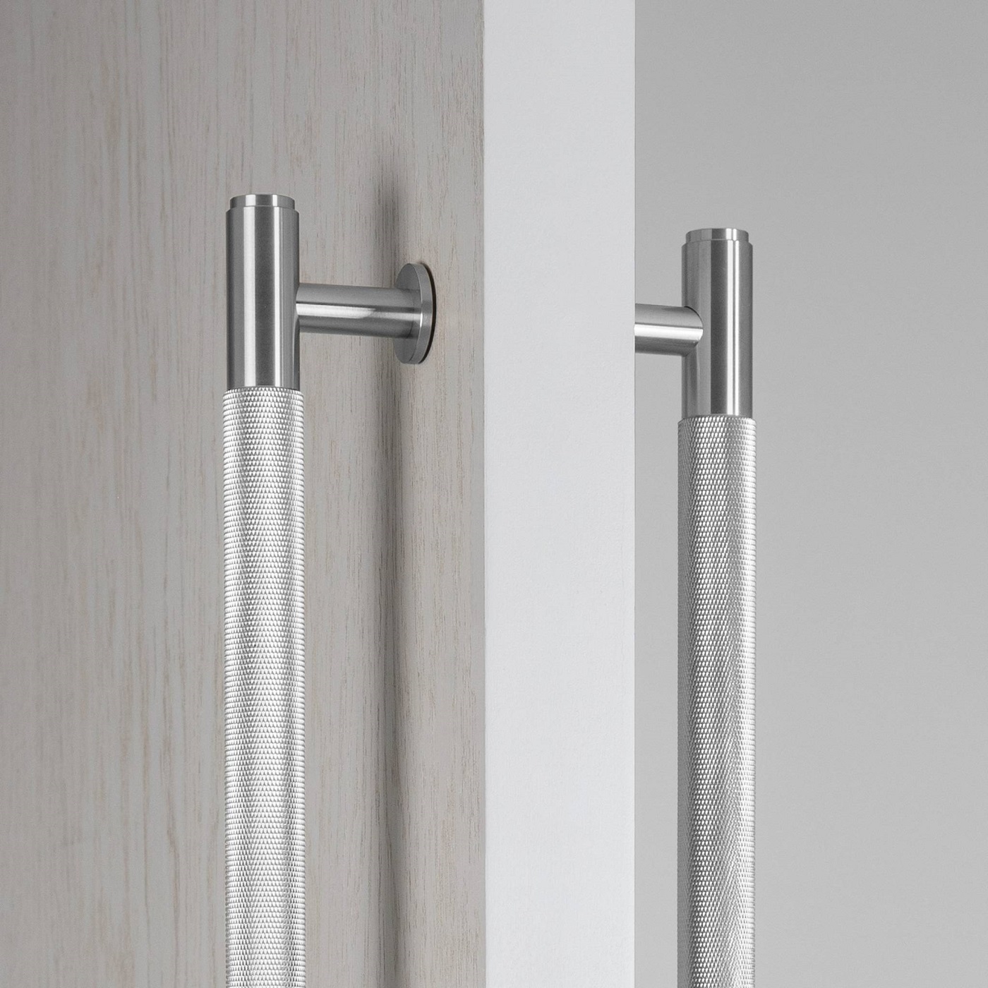 Двухсторонняя ручка Pull Bar Double-Sided Cross Steel из металла стального цвета с фирменным крестообразным узором в виде ромба. Эти ручки отлично смотрятся на внутренних стеклянных или сплошных дверях толщиной не менее 10 мм и не более 60 мм. В комплект входят две ручки с двухсторонним креплением.