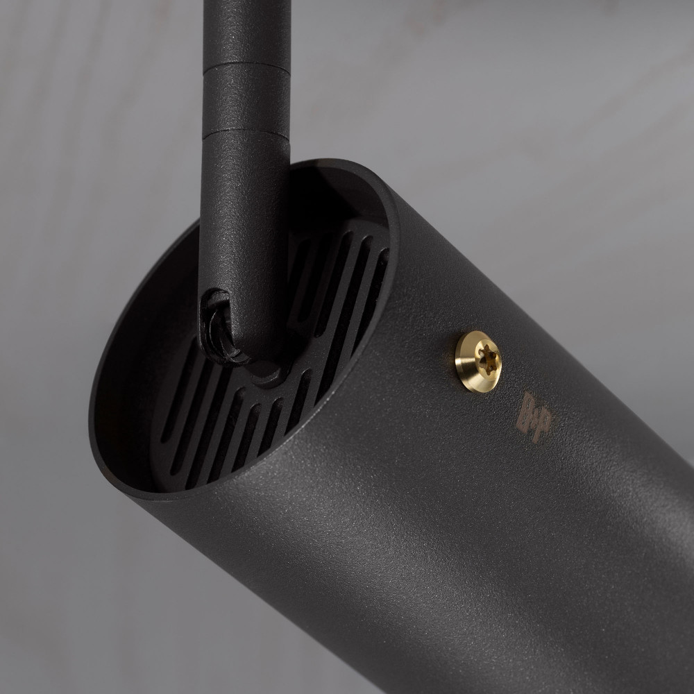 Регулируемый светильник из металла с графитовым порошковым покрытием и латунной отделкой. В центре внимания находятся фирменные перегородки с линейной накаткой и механические винты Torx, оба из которых изготовлены из прочной нержавеющей стали. Перегородка улавливает свет и создает тонкий металлический блеск, в то время как сотовый фильтр излучает точный, без бликов, направленный свет. Цоколь GU10. LED лампочка не входит в комплект, продается отдельно.
