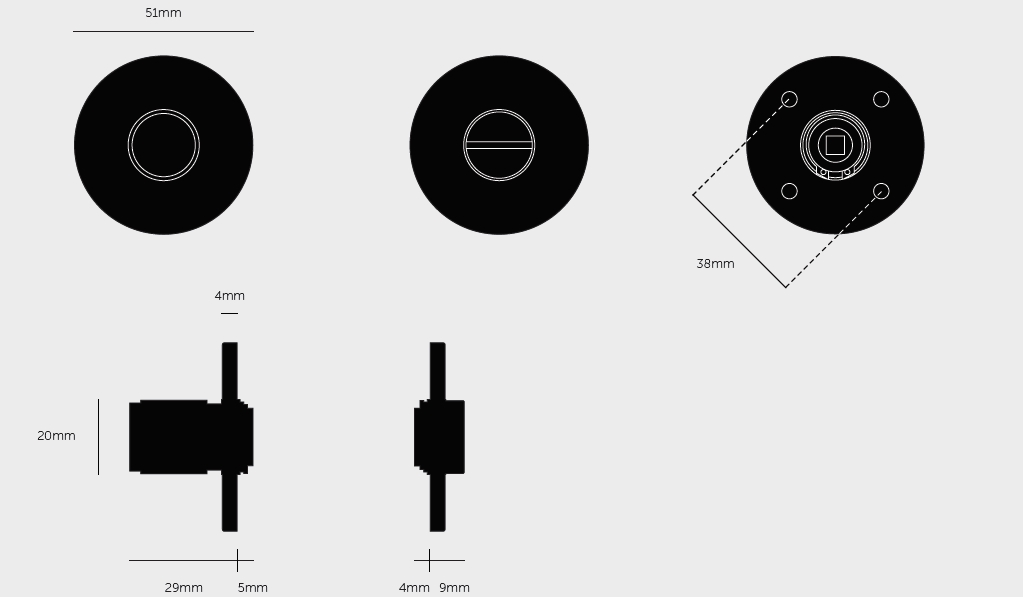 Декоративная накладка и поворотный механизм (передняя и задняя стороны) из металла латунного цвета с ромбовидной отделкой и розеткой толщиной 4 мм. Совместим с защелками или врезными замками (межосевое расстояние 38 мм). Подходит только для межкомнатных дверей.