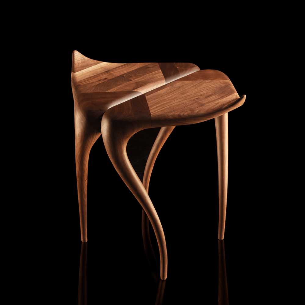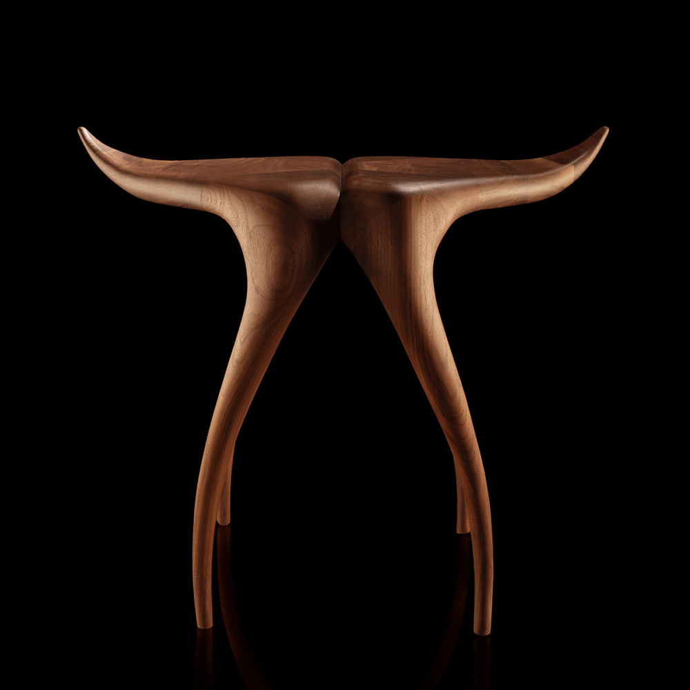 Столик с оригинальным дизайном выполнен из массива американского ореха, полностью ручная работа. Крепкая древесина, обладающая высокой степенью стабильности и длительным сроком службы. Поверхность богата структурными линиями и прожилками, цвет темный с просветлениями дает эффектные цветовые контрасты в интерьере. Мастера Camus Collection используют древесину из экологичных насаждений, где поддерживаются циклы лесовосстановления.