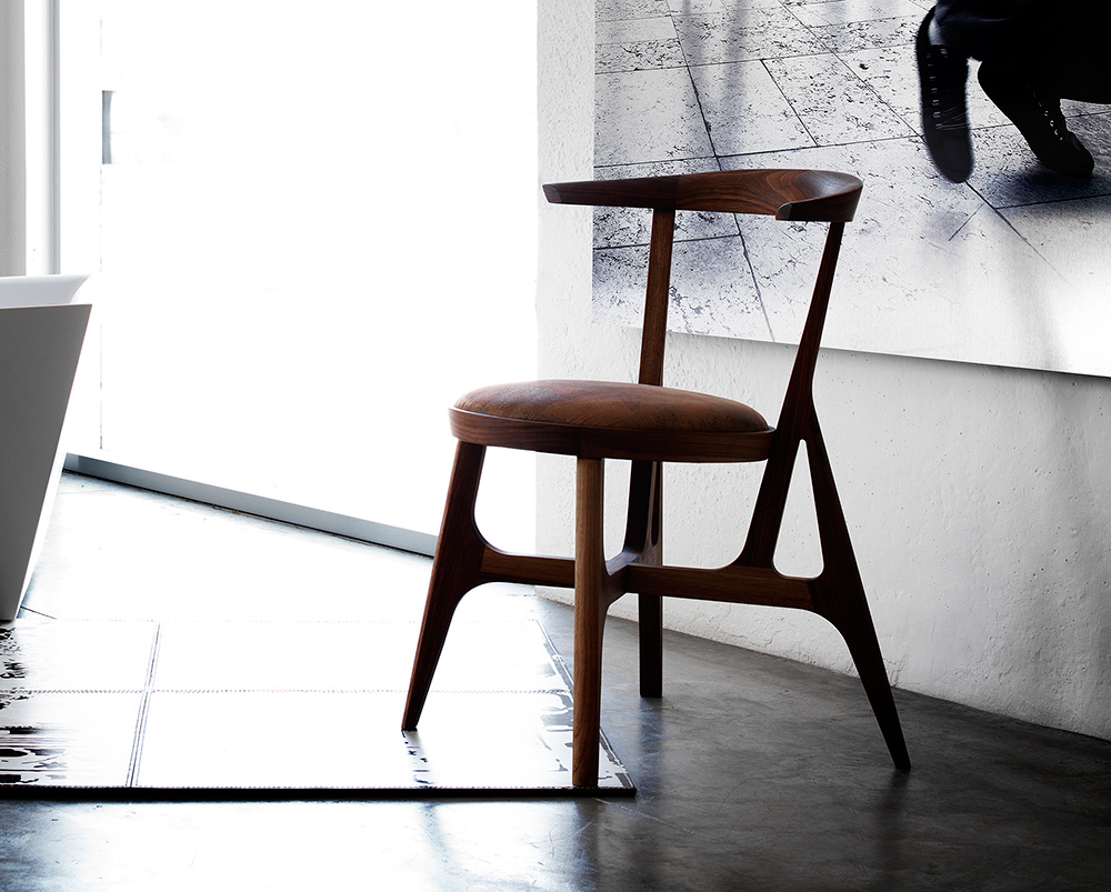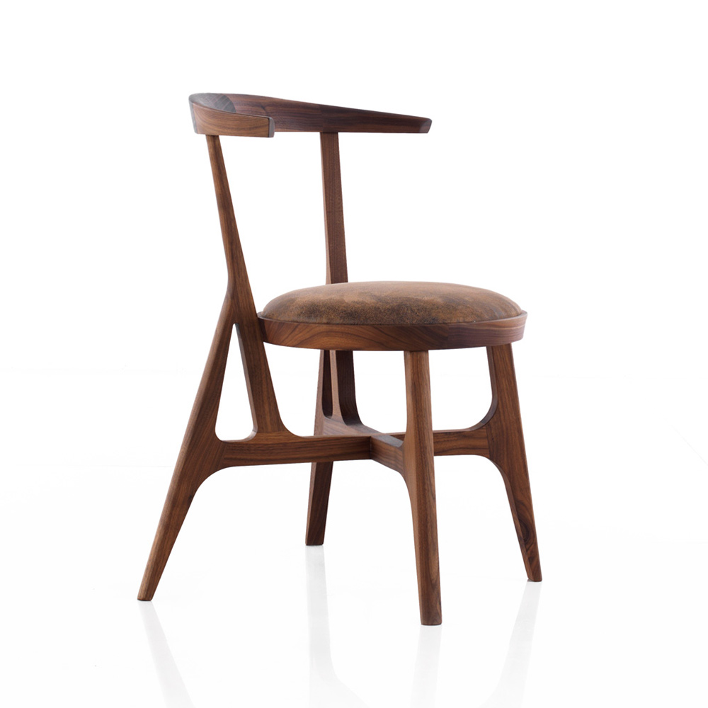 Стул с оригинальным дизайном HENDRIX CHAIR AMERICAN WALNUT+ BABEL LEATHER. Каркас выполнен из массива американского ореха, полностью ручная работа. Крепкая древесина, обладающая высокой степенью стабильности и длительным сроком службы. Поверхность богата структурными линиями и прожилками, цвет темный с просветлениями дает эффектные цветовые контрасты в интерьере. Мастера Camus Collection используют древесину из экологичных насаждений, где поддерживаются циклы лесовосстановления. Сидение обтянуто кожей.