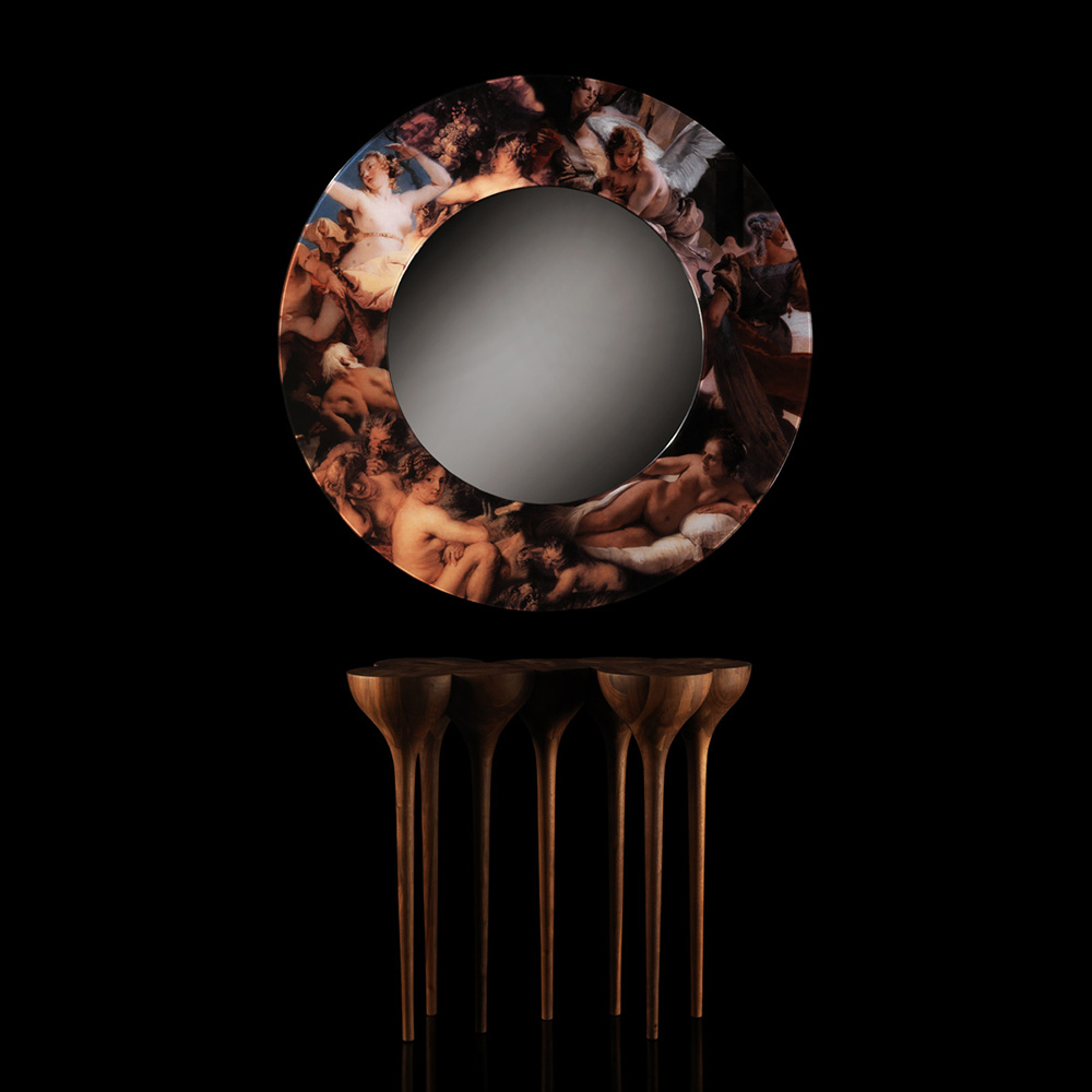 Зеркало BAROCCO MIRROR с оригинальным дизайном. На раму нанесен коллаж картины в стиле Барокко.