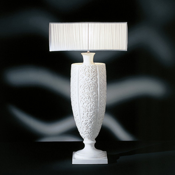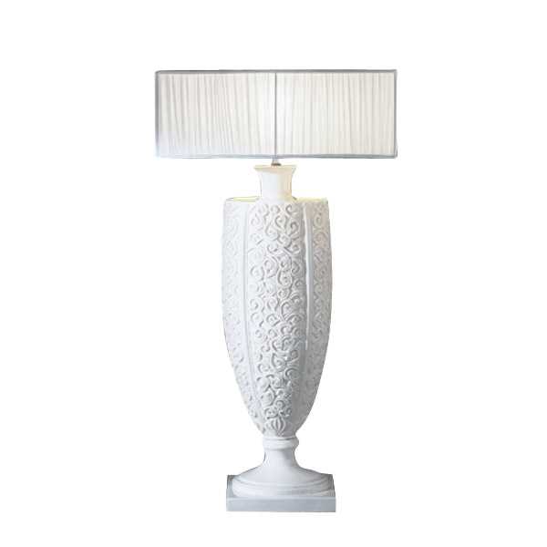 Настольная лампа "BIANCA INTAGLIATA". Ажурное основание лампы керамическое с белым глянцевым покрытием. Абажур из плиссированной белой органзы.