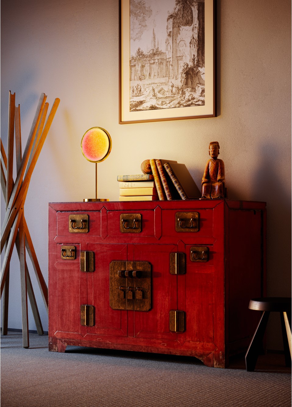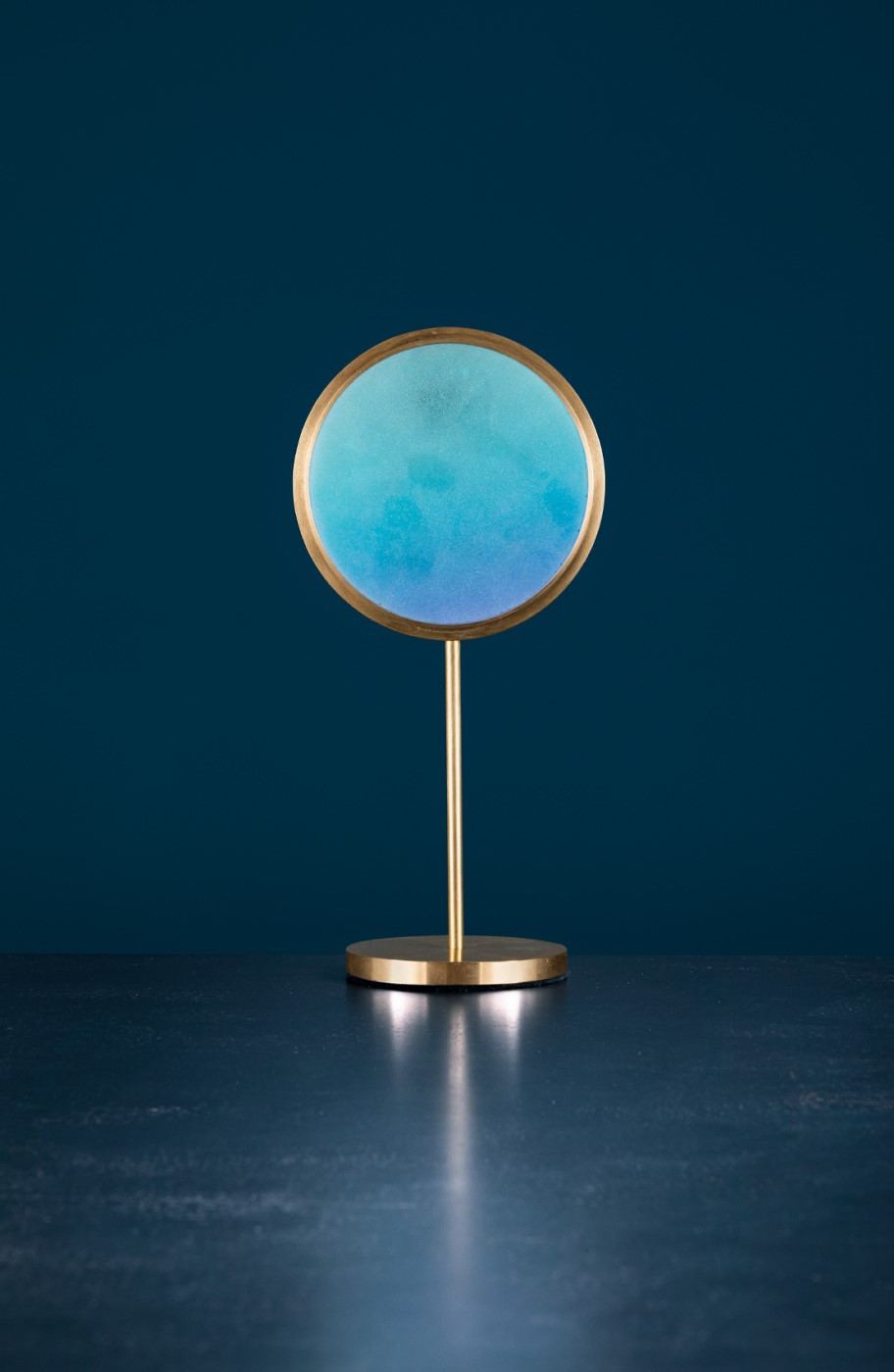 Talismano — новейшая настольная лампа, спроектированная Джулией Архимеде в сотрудничестве с Отделом разработки новой продукции компании Catellani & Smith. Латунная конструкция поддерживает переливчатое стекло, созданное в результате долгих экспериментов и подбора методов обработки, дающих такой эффект и в то же время обеспечивающих неповторимость каждого изделия.