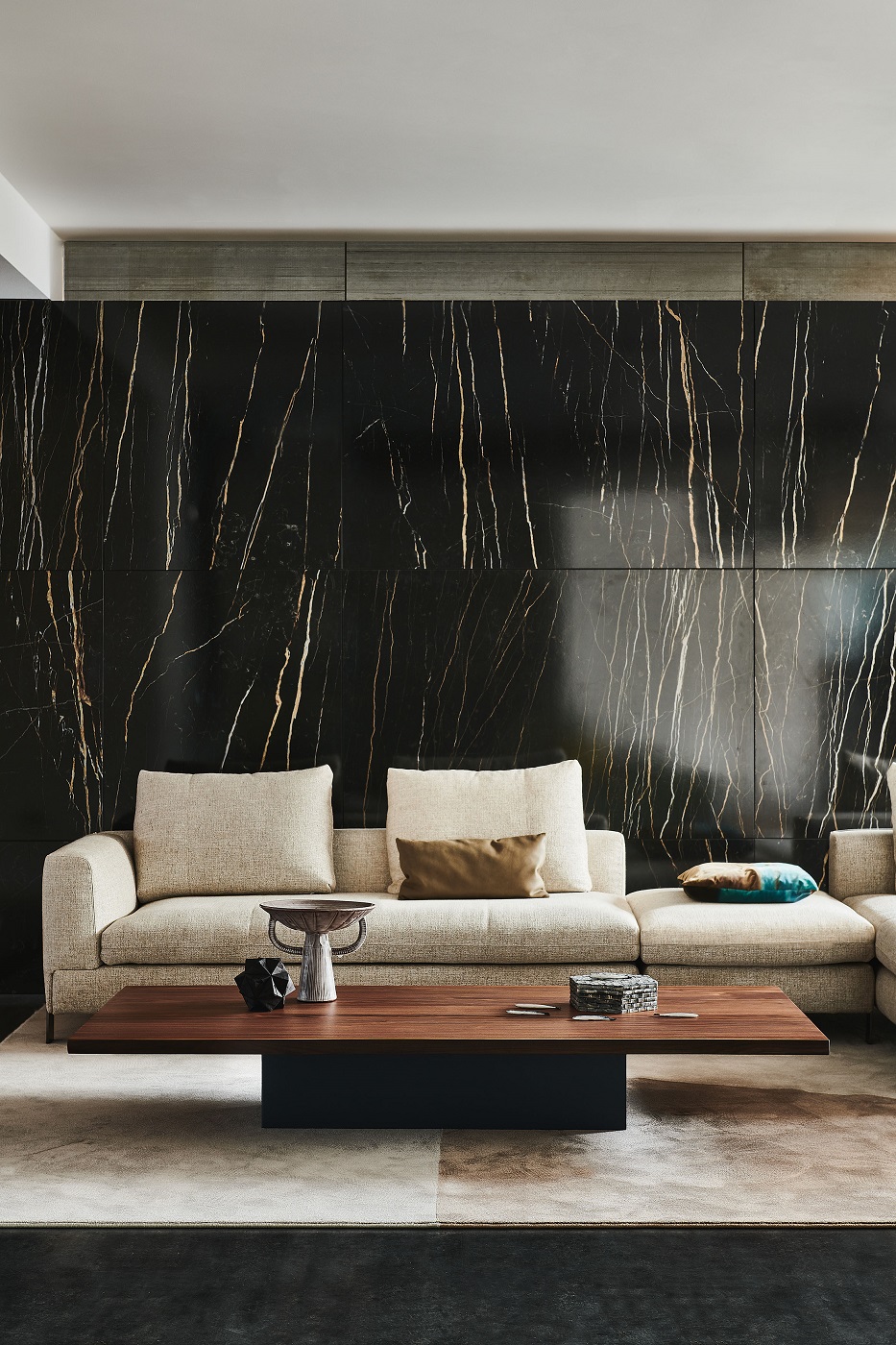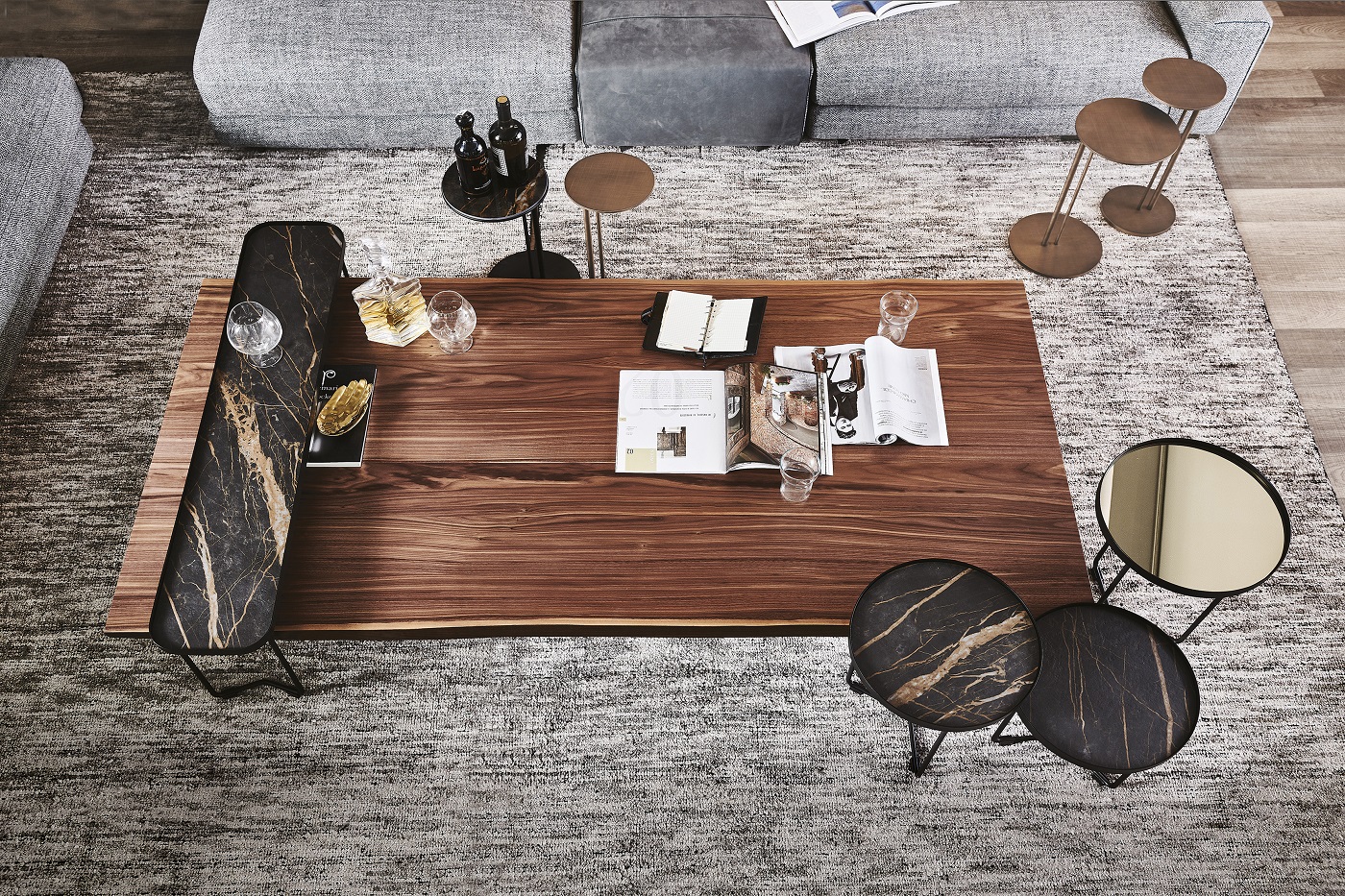 Журнальный стол Cattelan Italia Idem. Основание из металла графитового цвета, столешница из массива ореха.