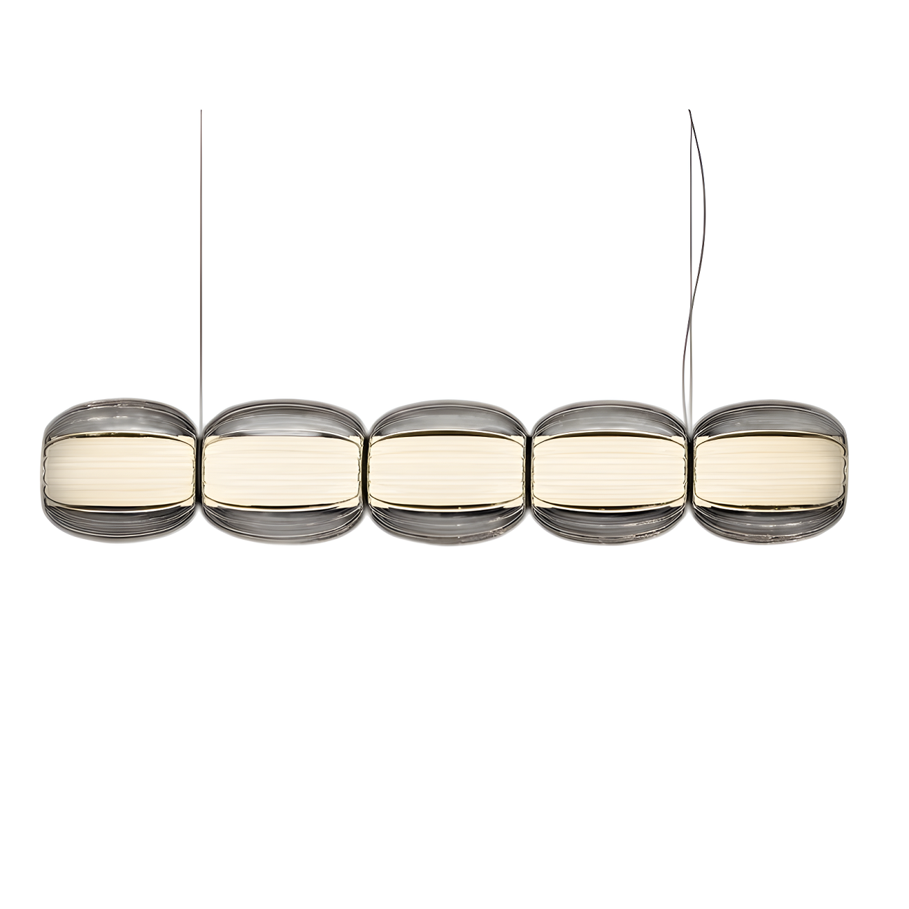 Семейство Alma предлагает три универсальные версии прозрачного плафона: дымчатый, янтарный и сливовый, отличные по форме в зависимости от серии. Металлическое основание в благородной отделке Golden nickel. Стоимость указана за подвесной светильник Alma серии Multipla в дымчатом абажуре Fumé. Высокий индекс цветопередачи CRI>90 обеспечивает максимально естественное восприятие окружающих оттенков, приближенное к дневному освещению. Драйвер, коаксиальный кабель и два стальных троса максимальной высотой 200см входят в комплект. Возможно увеличение длины кабеля до 500см. Поддержка диммирования Phase cut/Triac, по запросу — DALI, 1-10V или Casambi.