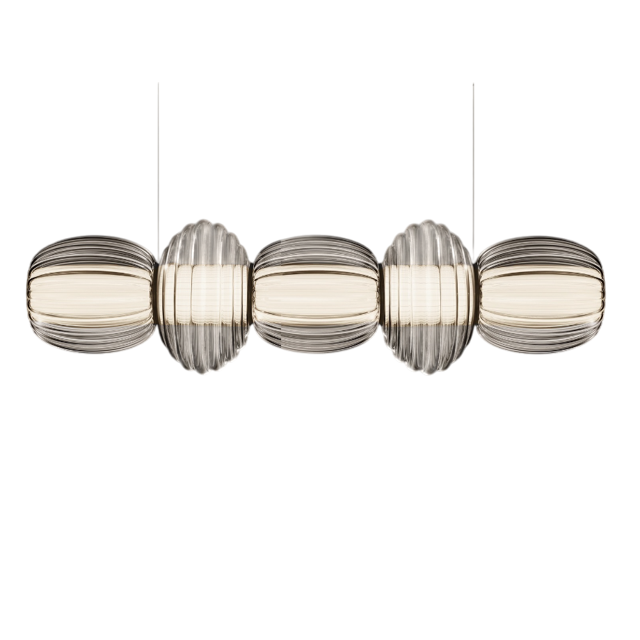 Семейство Alma предлагает выбор из трех версий прозрачного абажура — дымчатый, янтарный или сливовый, форма которых вариативна в зависимости от серии. Металлическое основание в благородной отделке Golden nickel. Стоимость указана за подвесной пятизвенный светильник Alma серии Plurima в дымчатом абажуре Fumé. Высокий индекс цветопередачи CRI>90 обеспечивает максимально естественное восприятие окружающих оттенков, приближенное к дневному освещению. Драйвер, коаксиальный кабель и два стальных троса максимальной высотой 200см входят в комплект. Возможно увеличение длины кабеля до 500см. Поддержка диммирования Phase cut/Triac, по запросу — оснащение опцией DALI, 1-10V или Casambi.