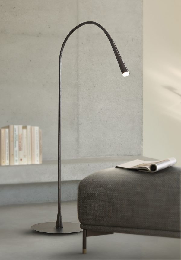 Торшер из коллекции FLEXILED выполнен из металла черного цвета и обтянут кожей темно-коричневого цвета.