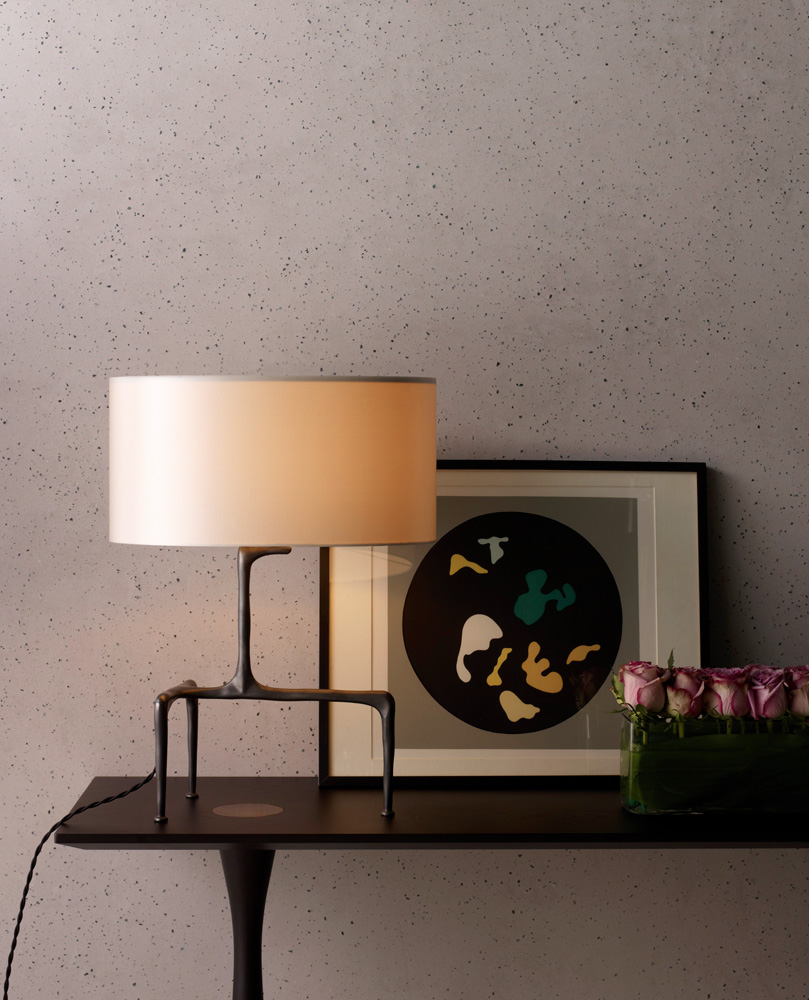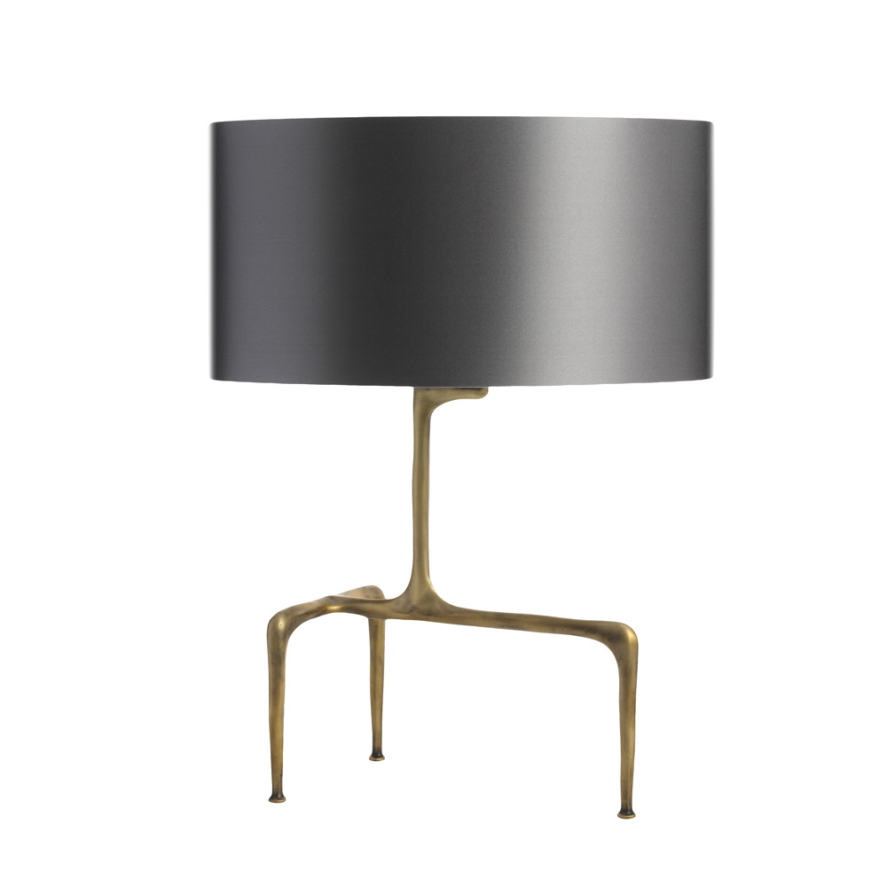 Настольная лампа из коллекции Braque на оригинальном основании из металла бронзового цвета. Плафон выполнен из шелковой ткани серого цвета. Возможны другие варианты покрытия металла и цвета абажуров.