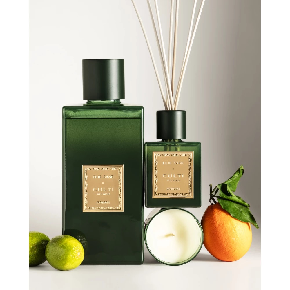 Elie Saab — первый аромат для дома, созданный эксклюзивно для бренда. Это уникальное сочетание традиций Maison Elie Saab и эстетики Culti Milano, воплощение роскоши и гармонии. Аромат открывается искристыми нотами горького апельсина и мандарина, которые затем раскрываются нотами имбиря и кедра.