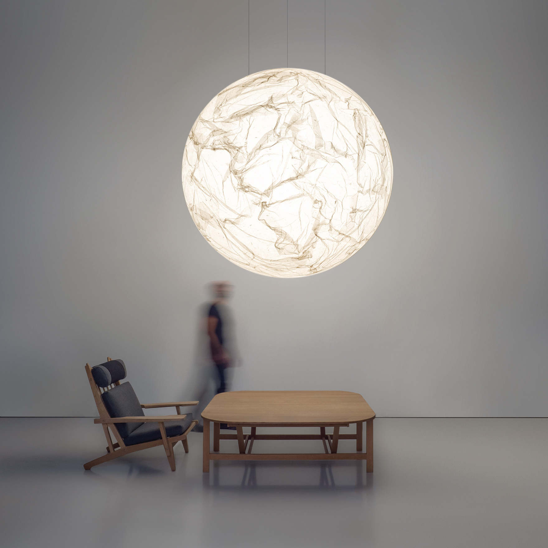 Подвесной светильник Moon 80 от Davide Groppi. Луна никогда не была так близко. Это вечный завораживающий образ, который вдохновляет и создает неповторимую атмосферу. Поверхность сферического абажура вручную покрывается японской бумагой, что делает каждый светильник уникальным. Модель Moon также доступна в настольной и напольной версии.