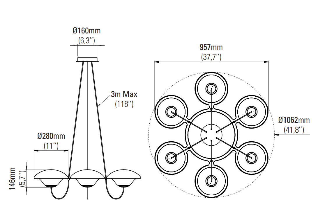 Идеальная симметрия In The Air уравновешивает пространство и визуально масштабирует его. Элегантное и стильное решение для гостиной, обеденной залы или ресторанного интерьера.