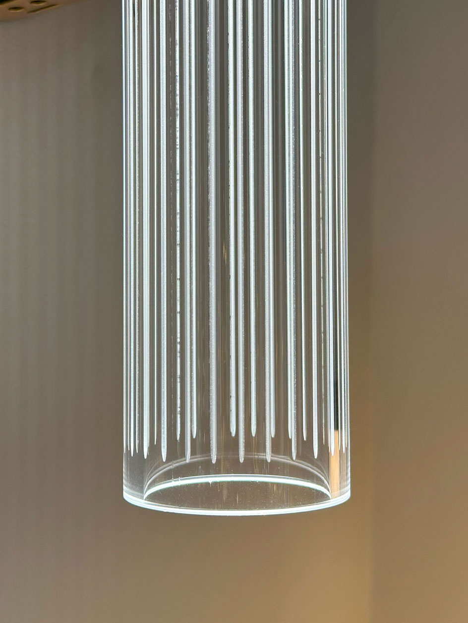 Подвесной светильник Delight Collection OM2367-F13 french gold с 13-ю подвесами на круглом основании. Плафоны цилиндрической формы из прозрачного стекла с вертикальными насечками. Основание светильника из металла золотого цвета. Высоту каждого подвеса можно регулировать, длина провода 150 см.