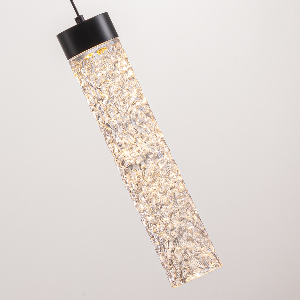 Подвесной светильник Delight Collection MD24030028-1A matt black/clear с плафоном цилиндрической формы из прозрачного фактурного стекла. Металлические части черного цвета.