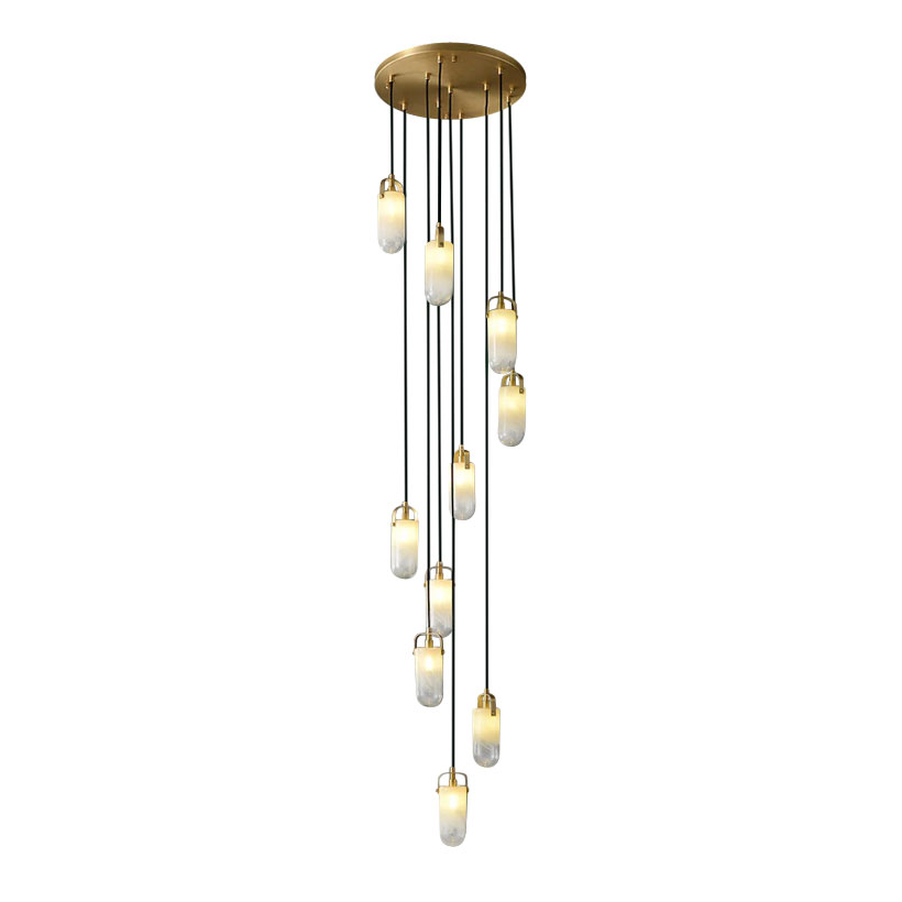 Подвесной светильник Delight Collection MT9056-10H brass с десятью подвесами на круглом основании цвета латунь. Плафоны цилиндрической формы из полупрозрачного стекла. Высота плафона с металлическим креплением 21,5 см, диаметр 7 см. Высота светильника и расположение плафонов относительно друг друга регулируется.