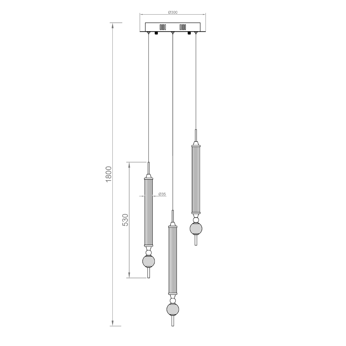 Подвесной светильник Delight Collection OD2503-3 gold с тремя подвесами на едином основании. Подвесы имеют узкие плафоны из акрила белого цвета. Дополнительно подвесы украшены небольшими элементами из янтарного стекла ручной работы. Металлические части золотого цвета. Высота одного элемента 58 см.