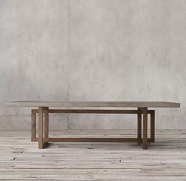 Уличный обеденный стол Stone с основанием из массива ироко покрытого маслом и столешницей из микробетона.