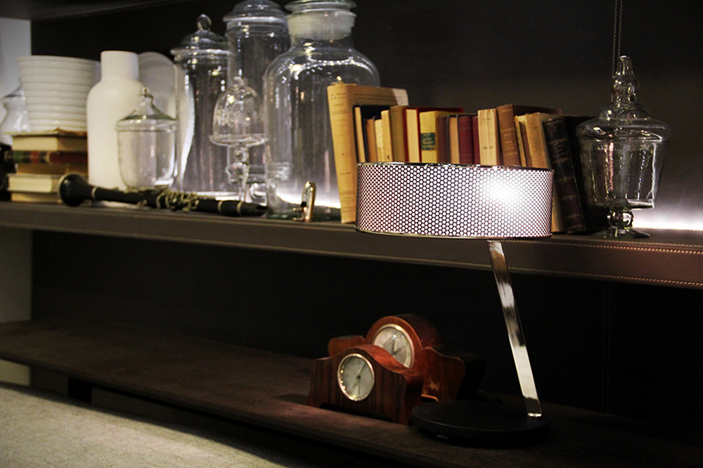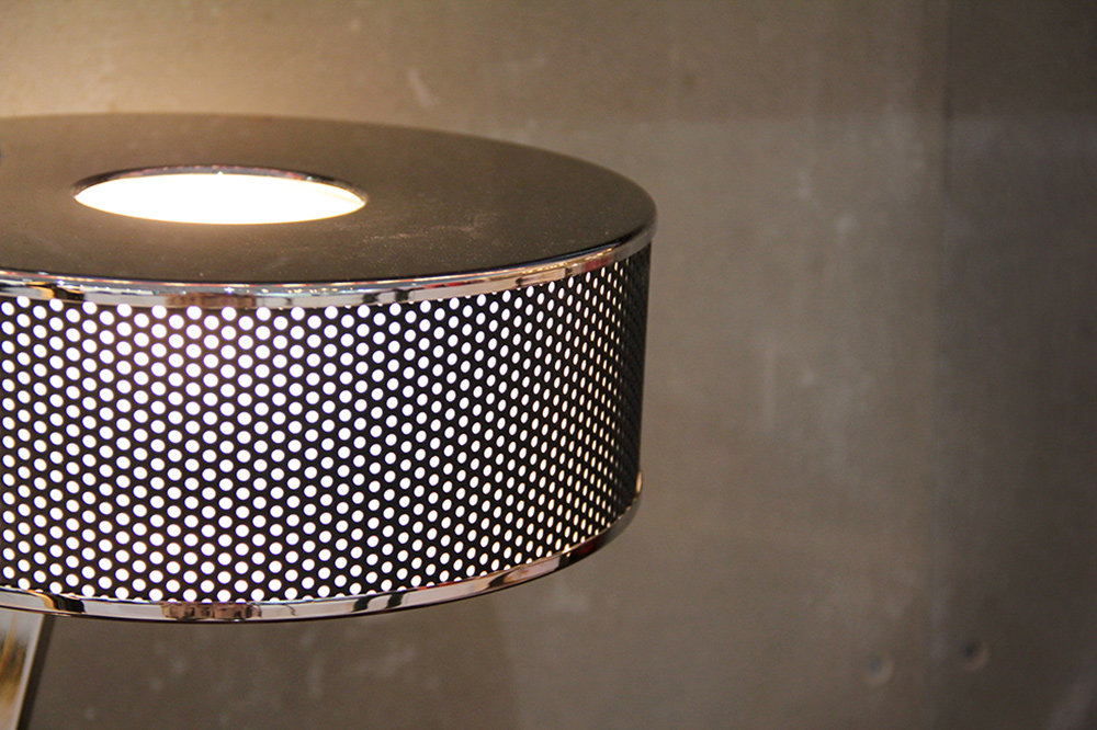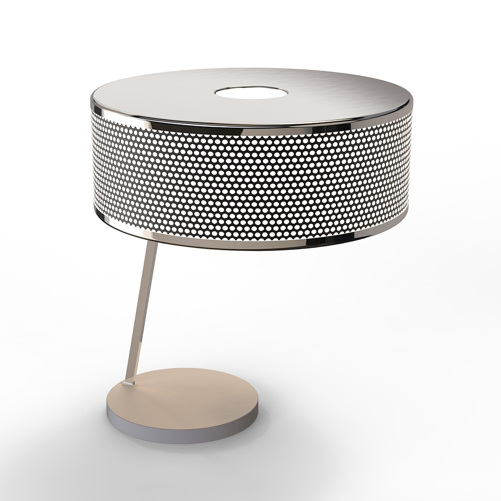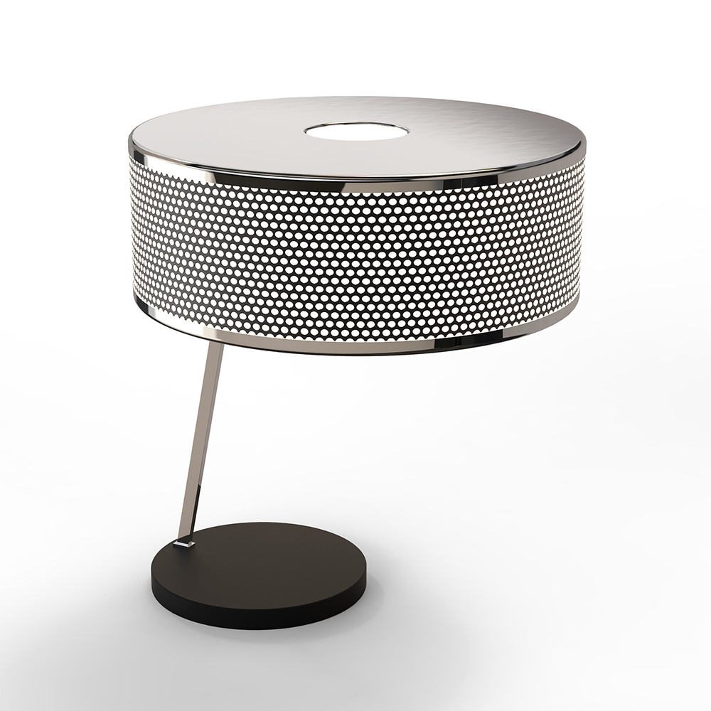 Настольная лампа из коллекции MARCUS на основании из металла черного цвета. Плафон из никелированного металла. Оригинальный дизайн. На заказ возможны различные цветовые вариации плафонов и металла.