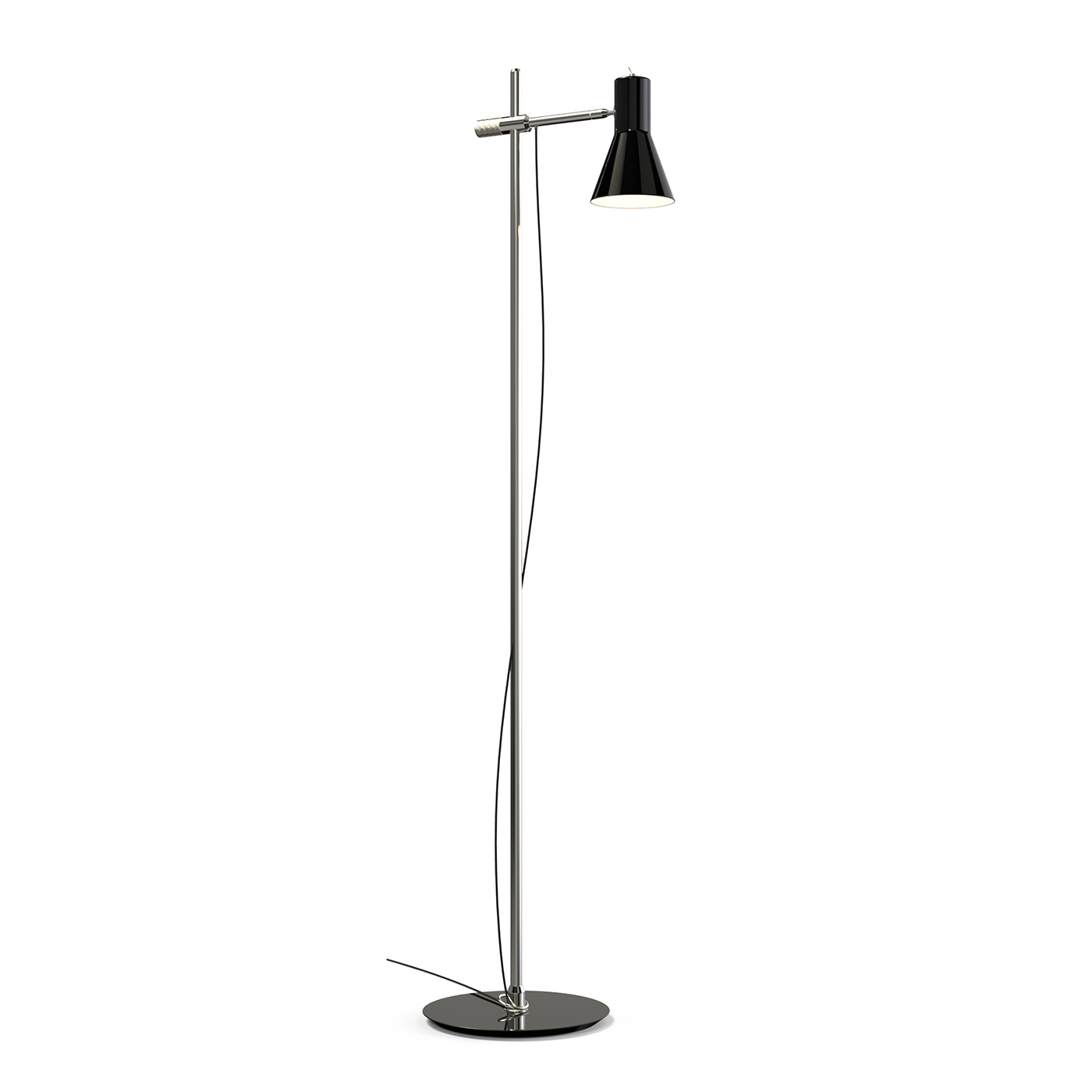 Торшер из коллекции COLEMAN на никелированном основании. Оригинальный дизайн, плафоны и база выполнены из металла черного цвета. Световой поток регулируется. На заказ возможны различные цветовые вариации.