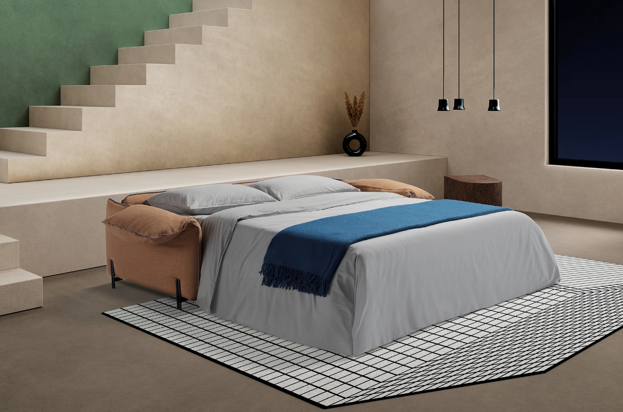 Раскладной диван-кровать с эффектом памяти и матрасом глубиной 210см превращает отдых в ощущение абсолютной легкости.