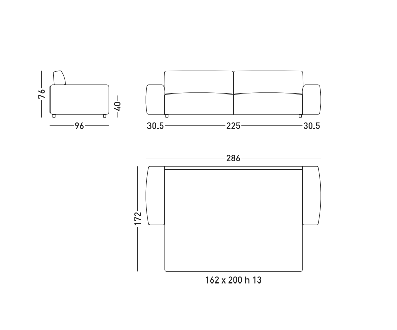 • В х Ш х Г: 76 x 225 x 96 см