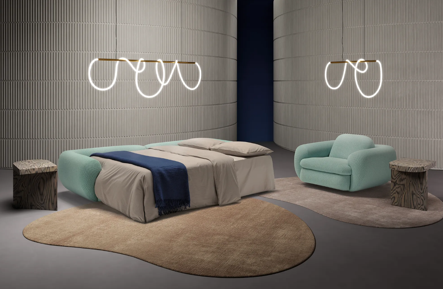Элегантность Curvi воплощена в эластичной обивке, которая подчеркивает каждый изгиб формы. Комфорт качественно переосмыслен: раскладной механизм поперечного дивана-кровати Curvi кардинально меняет представление о пространстве и отдыхе.