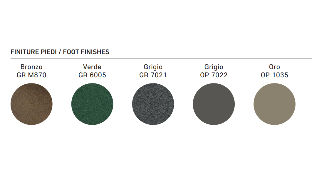 • Ножки высотой 15см из стали в различных вариантах отделки