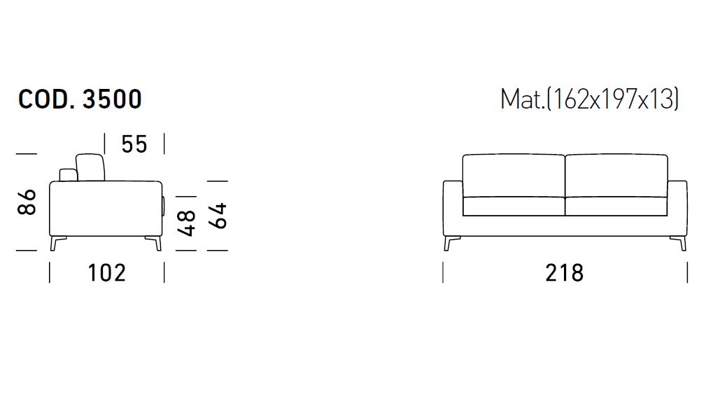 • В х Ш х Г: 86 x 218 x 102 см