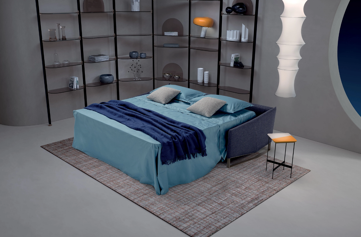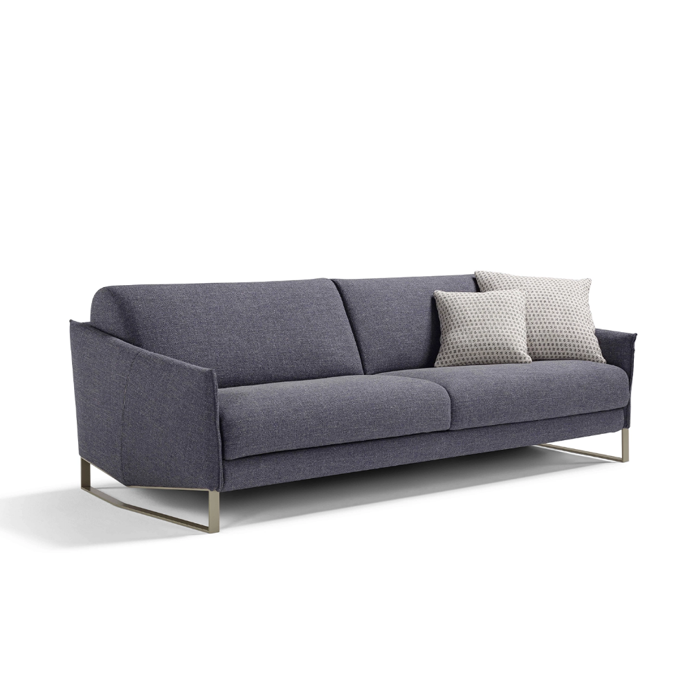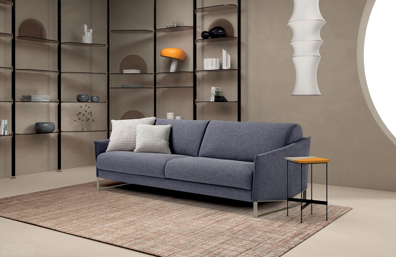 Элегантный диван-кровать с геометричными подлокотниками, матрасом h13 см и опорными ножками создан для ценителей функциональной эстетики.