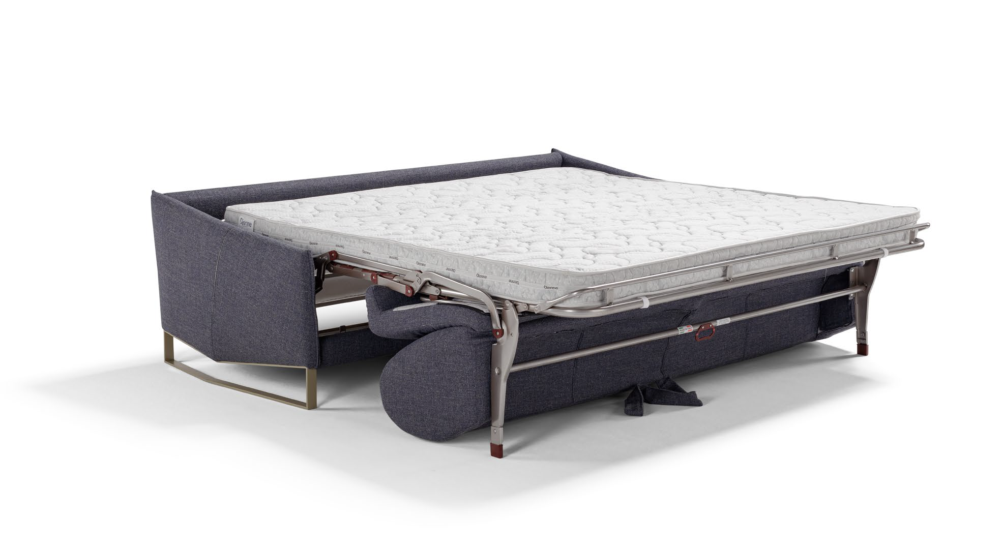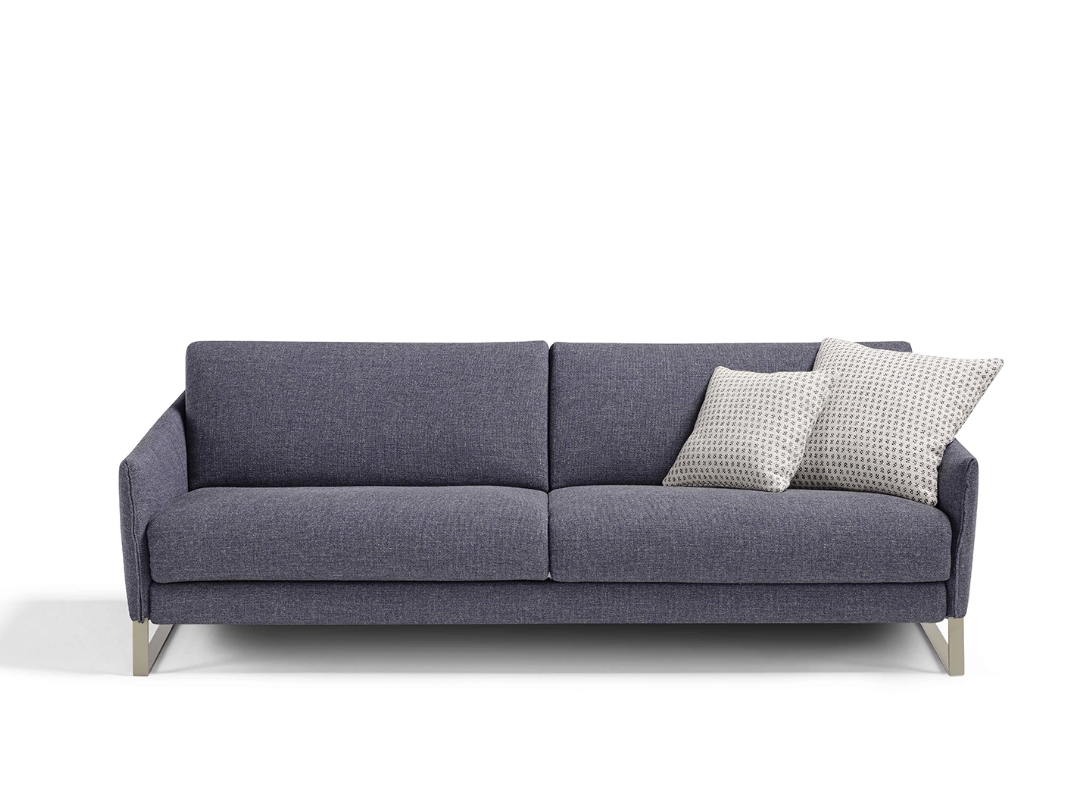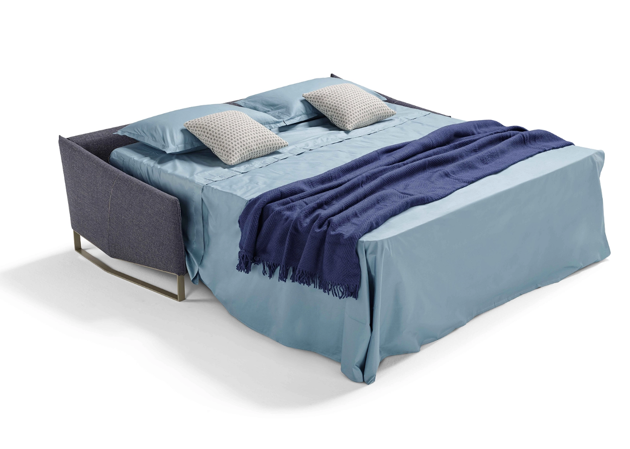 Элегантный диван-кровать с геометричными подлокотниками, матрасом h13 см и опорными ножками создан для ценителей функциональной эстетики.