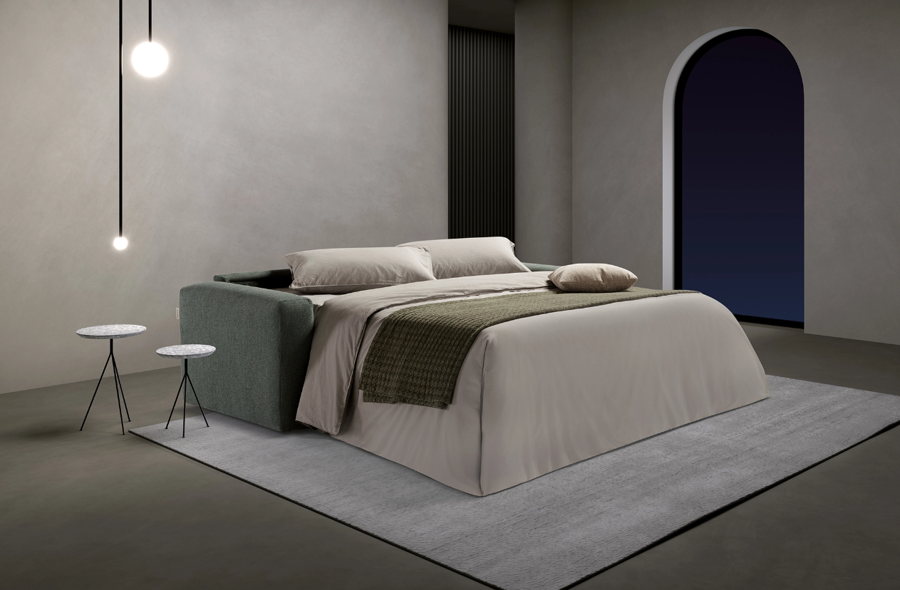 Классика в инновационном дизайне: диван-кровать Square с высоким матрасом толщиной 13 см оснащен раскладным электромеханизмом, который упрощает эксплуатацию и обеспечивает оптимальную практичность и комфорт.