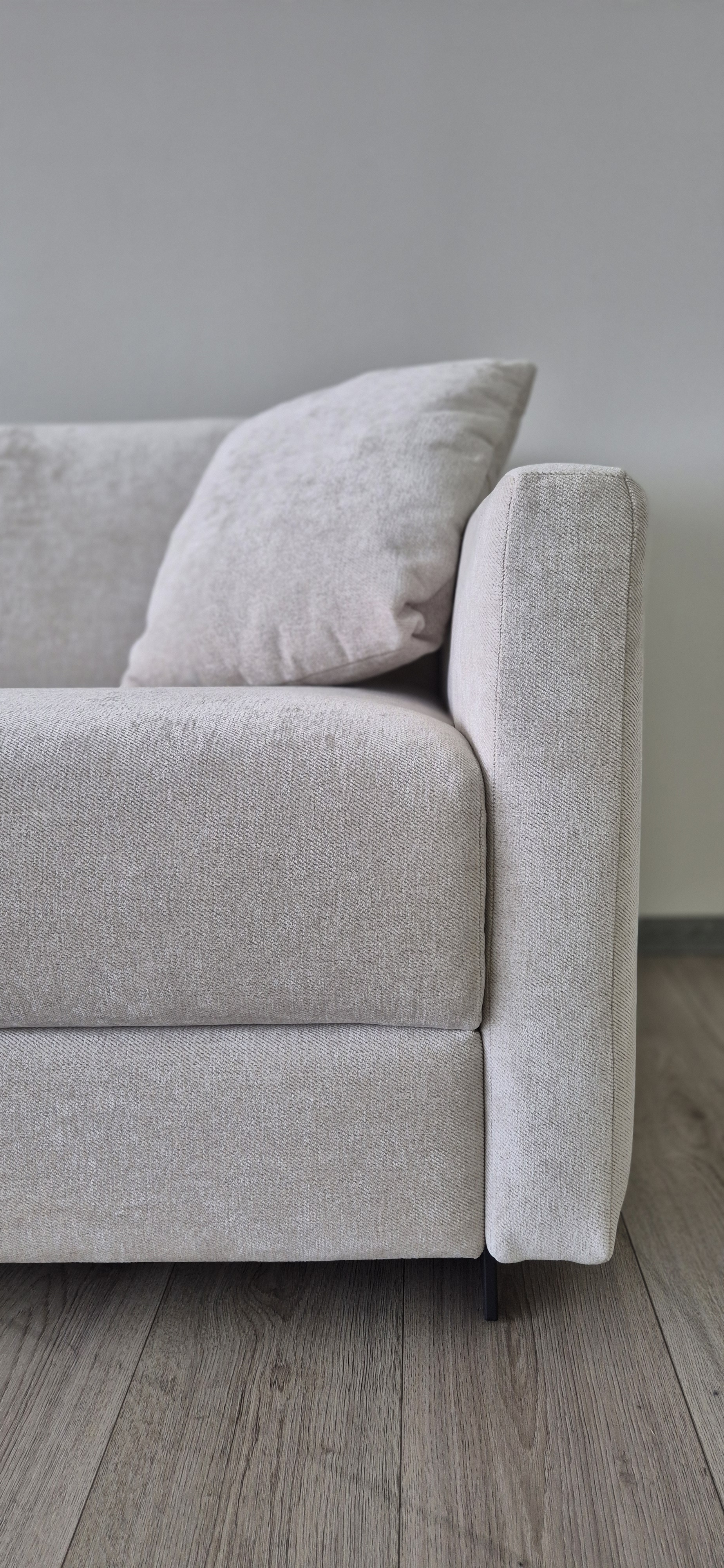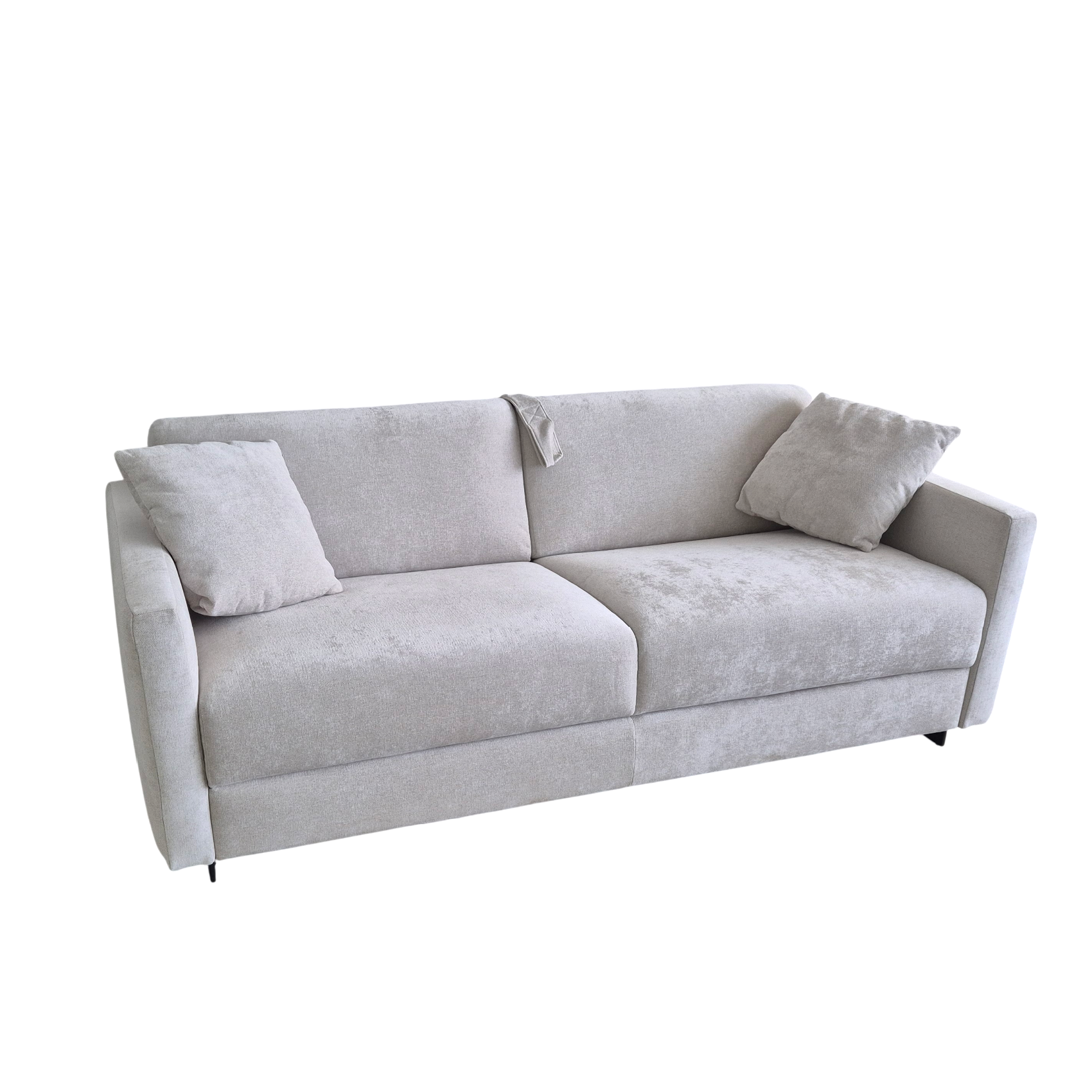 Классический эргономичный диван Tokyo представляет минималистичный дизайн и удобную раскладную конструкцию, за несколько секунд превращающую элегантный интерьерный объект в комфортное спальное место. Модель Tokyo 3500 с деревянными ортопедическими ламелями и высоким матрасом 17см, на металлическом каркасе с отделениями для хранения подушек, трансформируется в спальное место 162x197x17см. Высота ножек 8 см. Стандартный эластичный полиуретановый матрас, полностью съемный текстильный чехол на молниях и велькро. Комплектуется двумя декоративными подушками 40x40см согласно отделке дивана. Стоимость указана за диван-кровать Tokyo 3500 в отделке из водоотталкивающей износостойкой ткани категории А кремово-белого цвета Gogh 020.