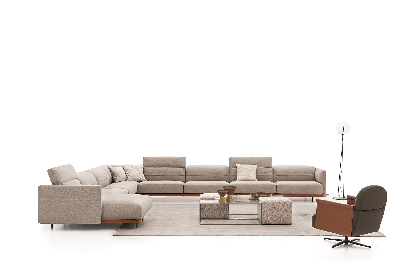 Горизонтальное пространство едва ограничено по бокам тонкими подлокотниками, которые выделяют различные версии и конфигурации. Спинка, которую можно отрегулировать для идеального расслабления, чтения или разговора: другими словами, чтобы жить на полную катушку.