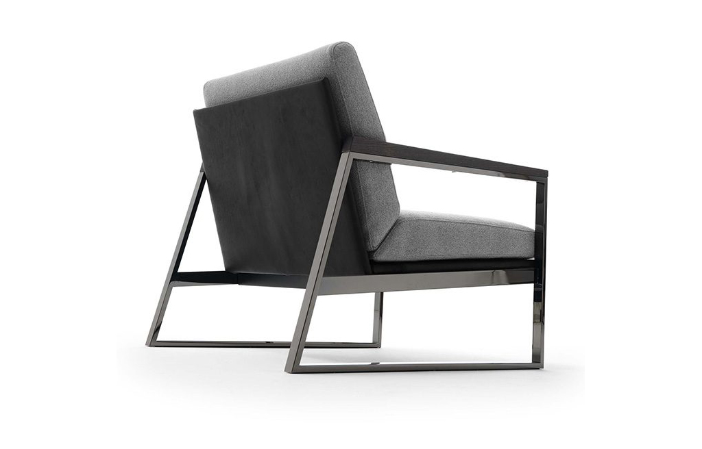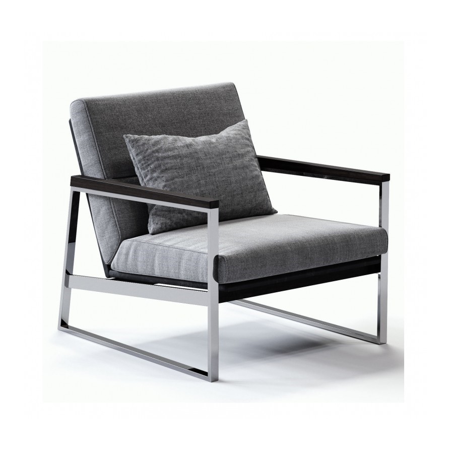 Кресло Ditre Italia Daytona. Основание из кожи черного цвета и металлическая структура с никелированной отделкой дополненная деревянными подлокотниками. Подушки спинки и сиденья со съемными чехлами из ткани серого цвета. Под заказ доступна модель кресла полностью из кожи, или комбинации кожа+ткань различных цветов.