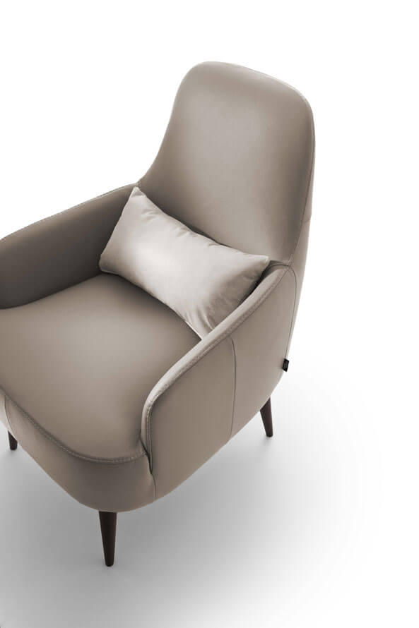 Кресло с мягкими и комфортными очертаниями, поддерживается элегантными деревянными ножками, придающими модели изысканный вид, и находится в совершенном равновесии между винтажным духом и современным дизайном.