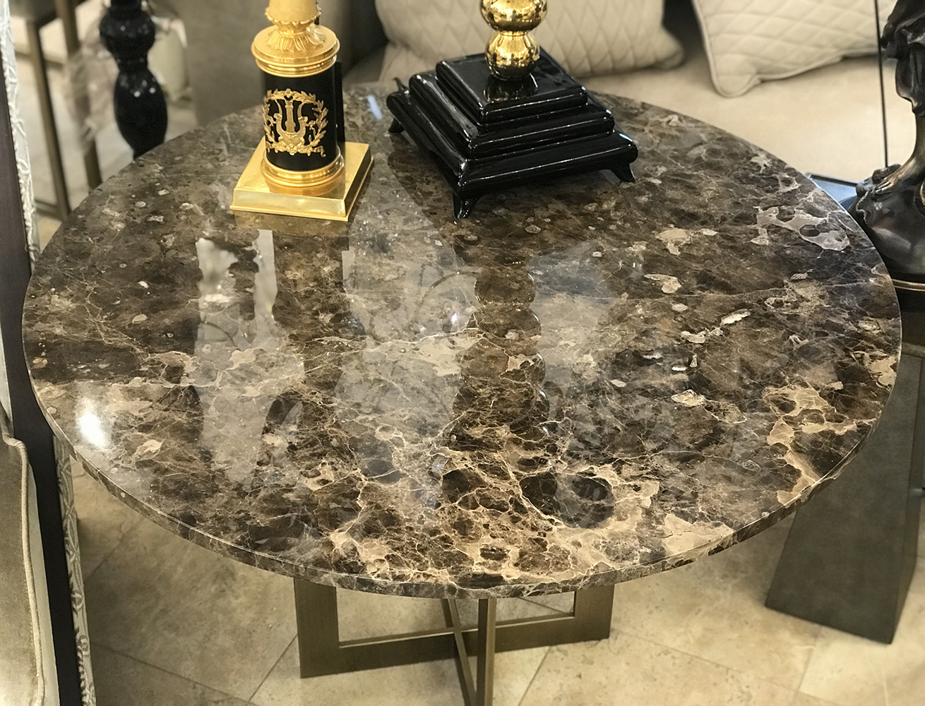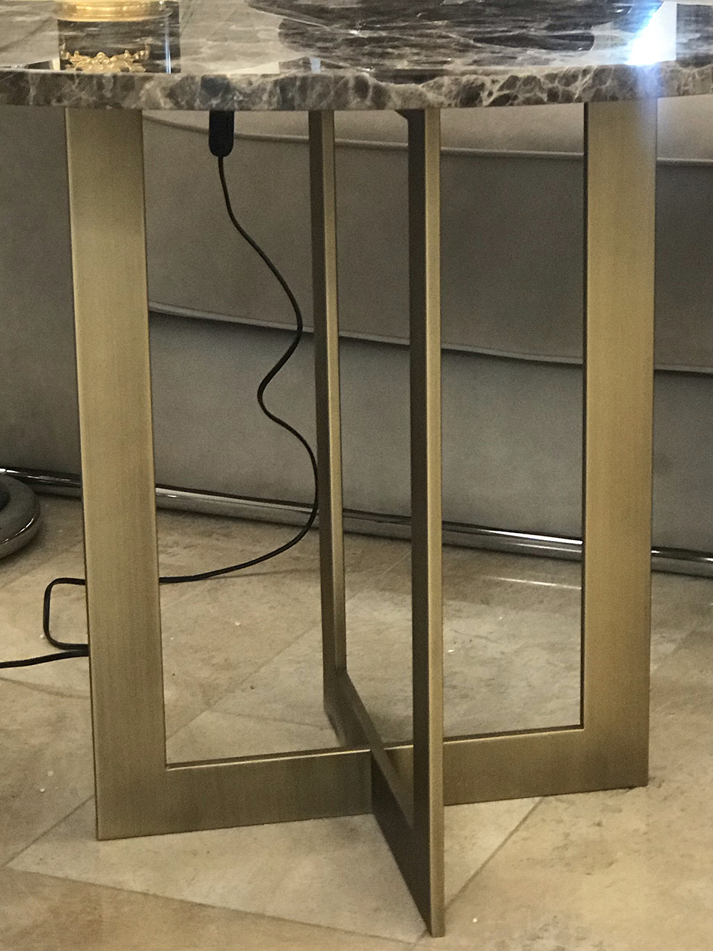 Приставной столик BYRON tavolo lampada с каркасом из металла матового бронзового цвета. Столешница выполнена из мрамора черно-коричневого цвета.