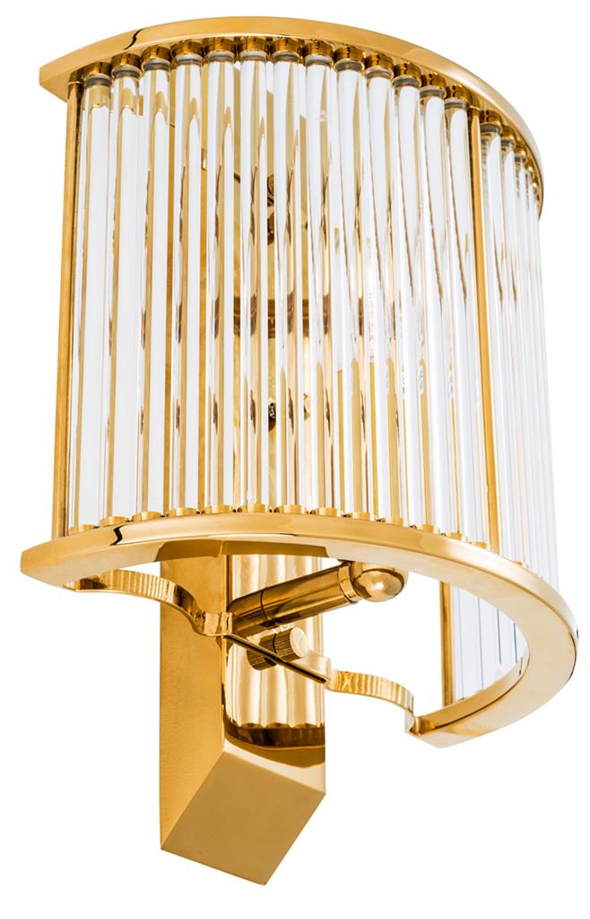 Настенный светильник Wall lamp Oakley выполнен из металла золотого цвета. Плафон выполнен из прозрачного фактурного стекла.