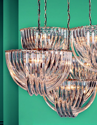 Подвесной светильник Chandelier Murano 50 на никелированной арматуре. Плафон выполнен из нескольких закрученных элементов из прозрачного акрила. Высота светильника регулируется за счет звеньев цепи.
